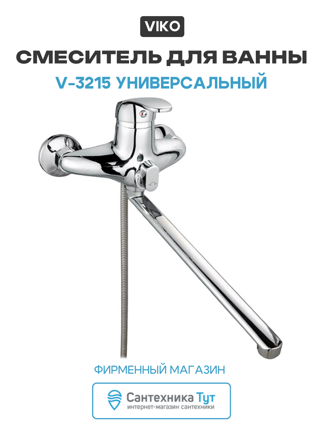 Купить Смеситель для ванны Viko V-3215 универсальный Хром латунь на стену с доставкой по всей России.
