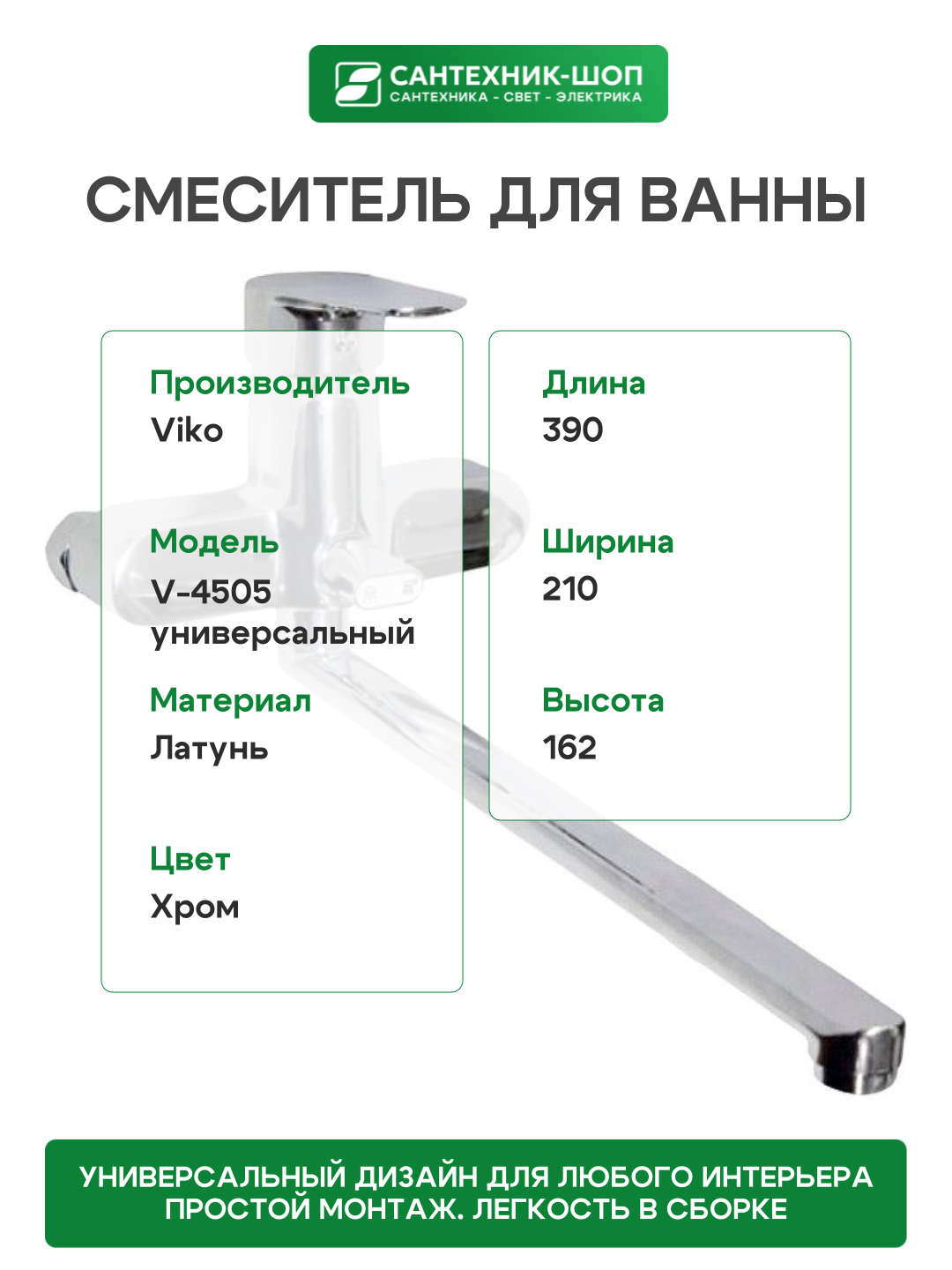 Смеситель для ванны Viko V-4505 универсальный Хром: сравнение цен, характеристики, фото, актуальное наличие и цены.