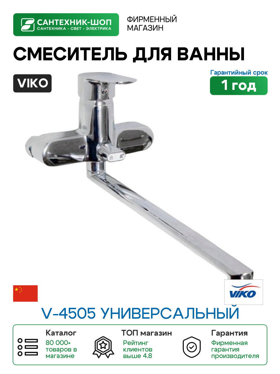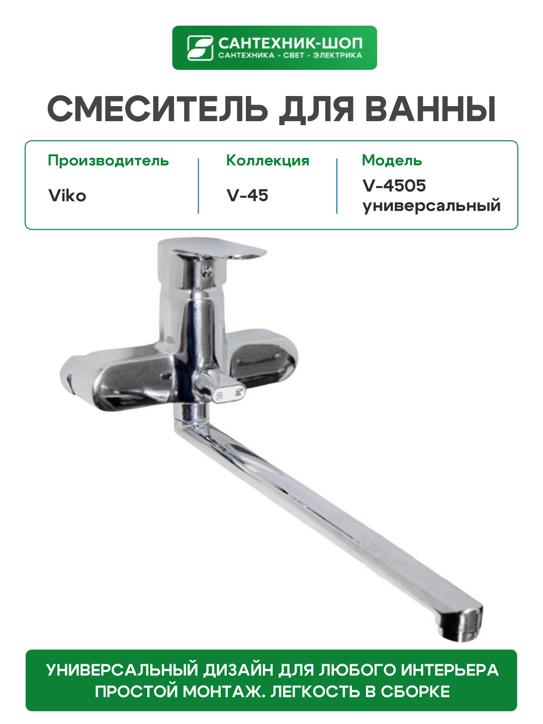 Купить Смеситель для ванны Viko V-4505 универсальный Хром с доставкой по всей России.