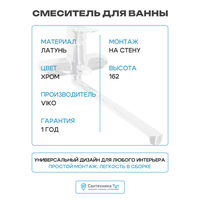 Купить Смеситель для ванны Viko V-4505 универсальный Хром латунь на стену с доставкой по всей России.