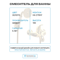 Купить Смеситель для ванны Webert Aurora AU850101010 Золото латунь на стену Италия с доставкой по всей России. Смеситель для ванны Webert Aurora AU850101010 Золото латунь на стену Италия: сравнение цен, характеристики, фото, актуальное наличие и цены.