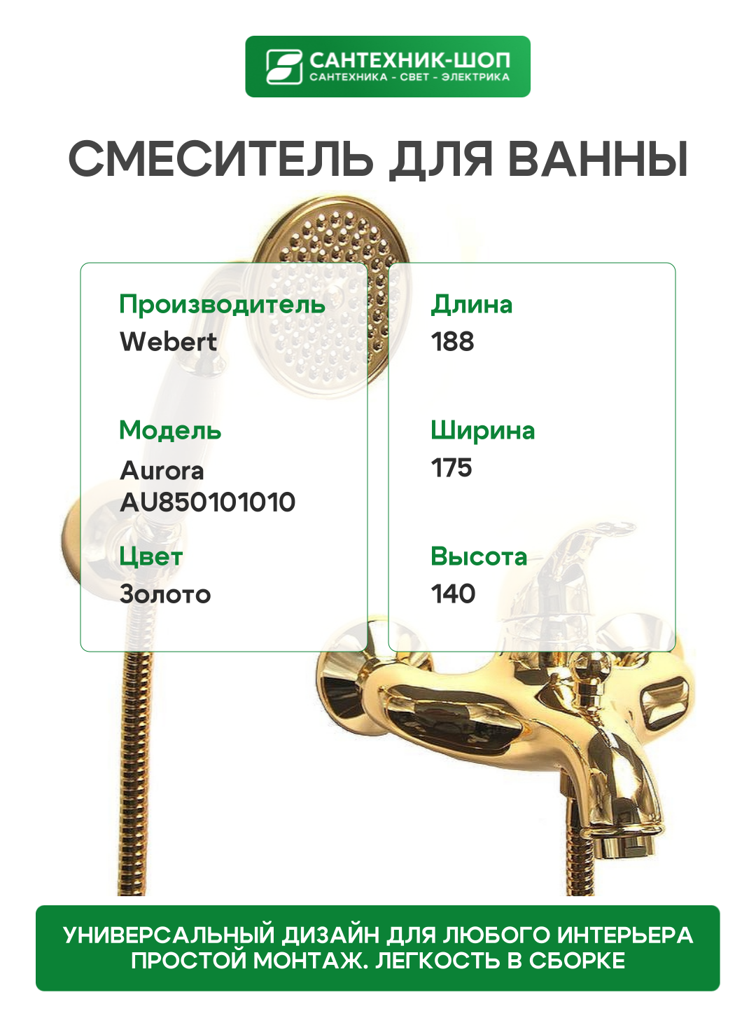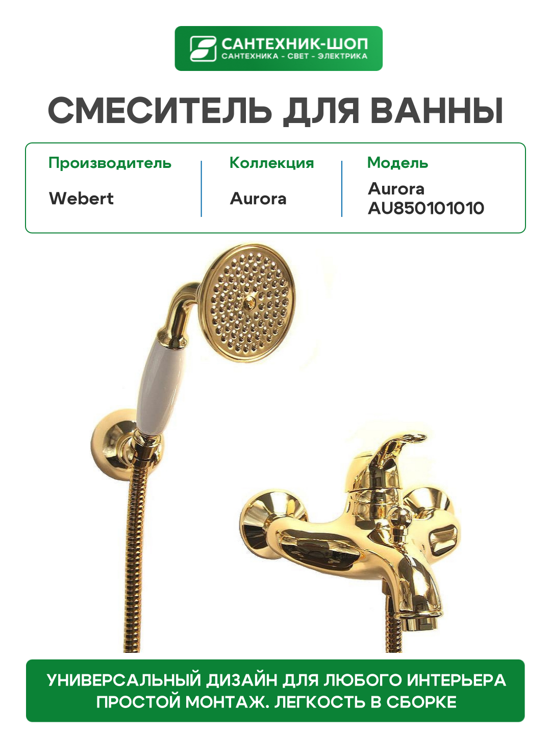 Смеситель для ванны Webert Aurora AU850101010 Золото на стену: сравнение цен, характеристики, фото, актуальное наличие и цены.