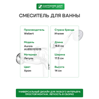 Купить Смеситель для ванны Webert Aurora AU850101015 Хром латунь на стену Италия с доставкой по всей России. Смеситель для ванны Webert Aurora AU850101015 Хром латунь на стену Италия: сравнение цен, характеристики, фото, актуальное наличие и цены.