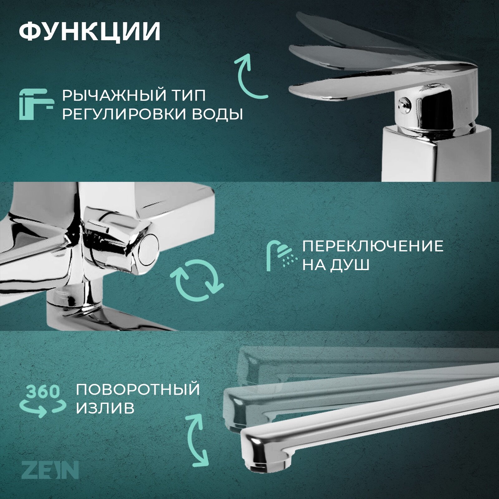 Смеситель для ванны ZEIN Z3845, однорычажный, излив 30 см, душевой набор, лейка 5 реж, хром: сравнение цен, характеристики, фото, актуальное наличие и цены.