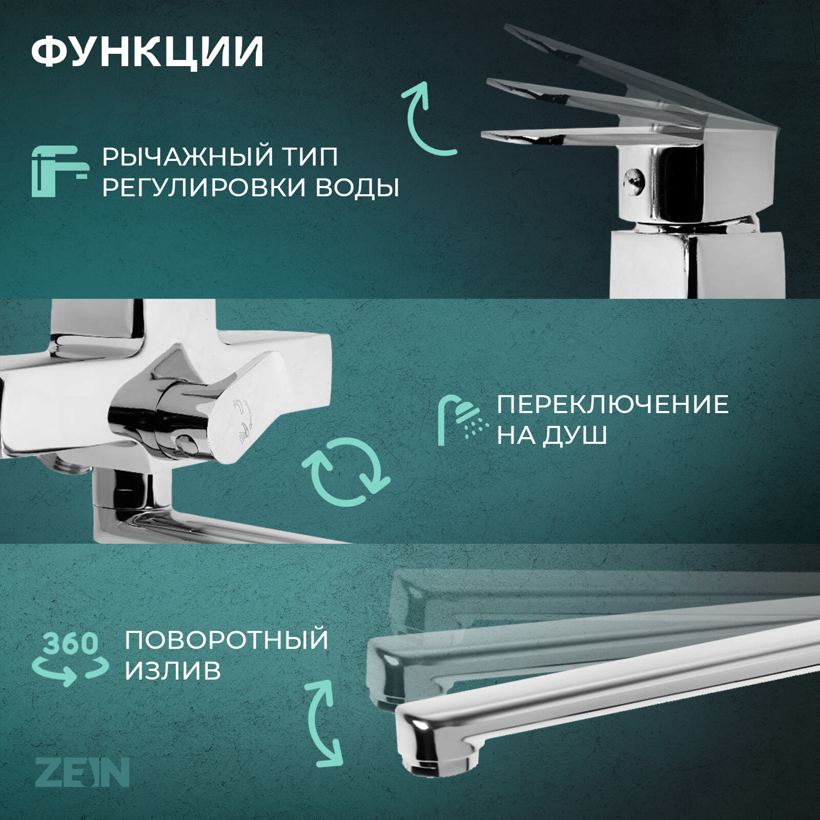 Купить Смеситель для ванны ZEIN Z3849, однорычажный, излив 30 см, душевой набор, лейка 5 реж, хром с доставкой по всей России. Смеситель для ванны ZEIN Z3849, однорычажный, излив 30 см, душевой набор, лейка 5 реж, хром: сравнение цен, характеристики, фото, актуальное наличие и цены.