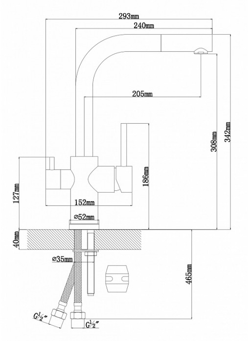 Смеситель для кухни с гибким изливом и подключением фильтра R758Y цвет пепельный