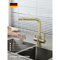 Смеситель для кухни с подключением к фильтру Frap F4352-23 латунь, золотой сатин: сравнение цен, характеристики, фото, актуальное наличие и цены.