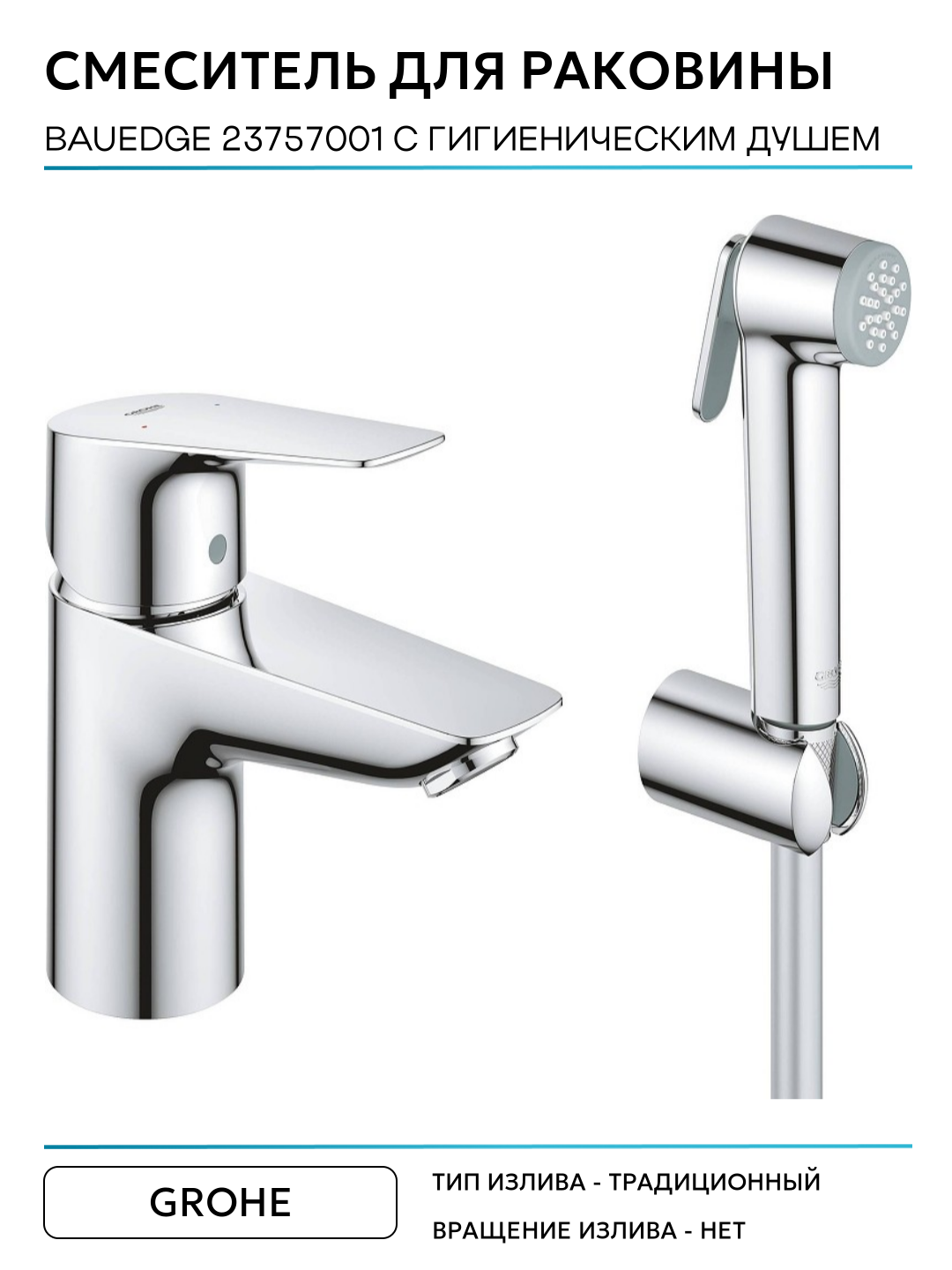 Смеситель для раковины Grohe BauEdge 23757001 с гигиеническим душем Хром латунь Германия: сравнение цен, характеристики, фото, актуальное наличие и цены.