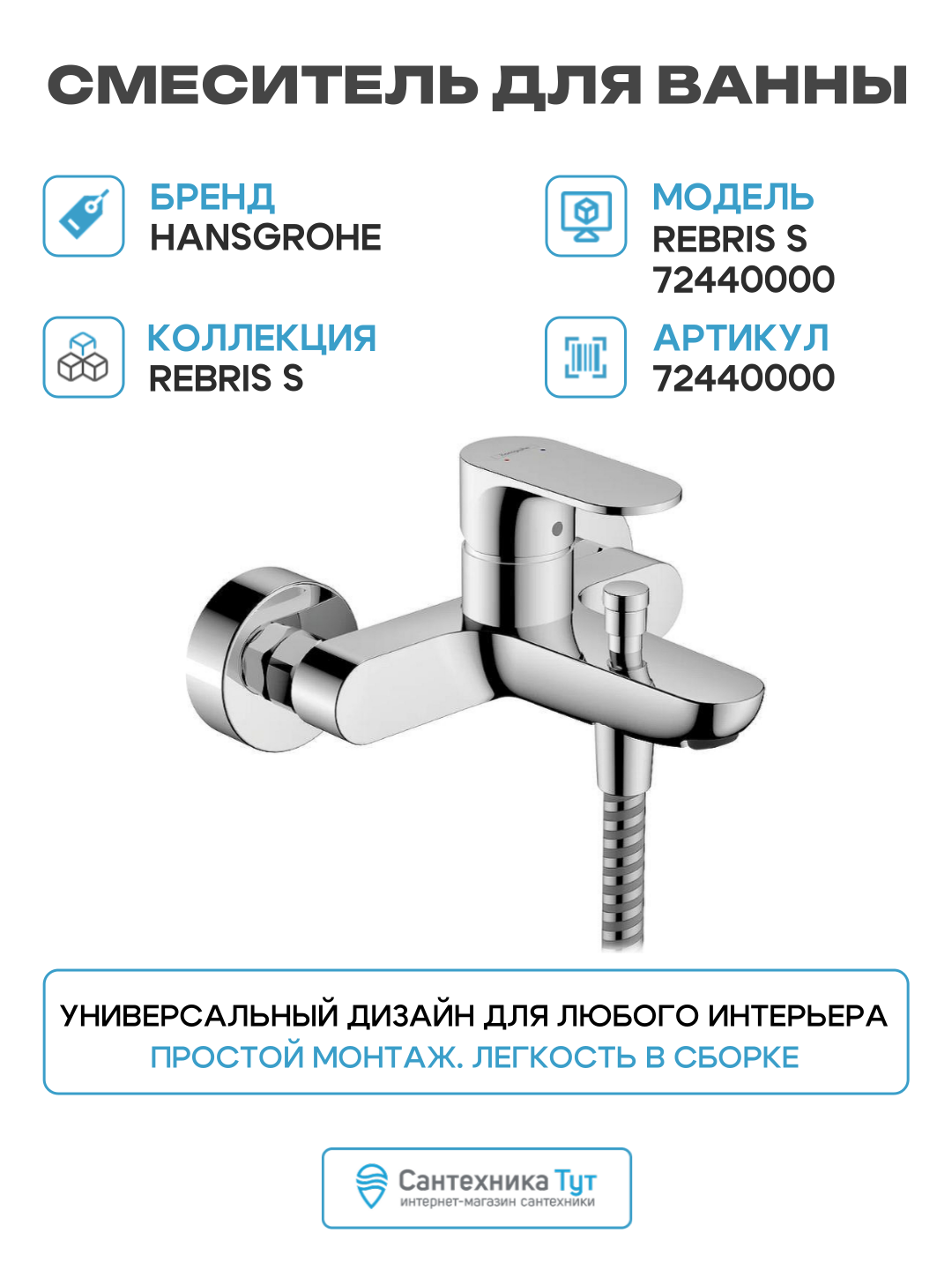 Смеситель для ванны Hansgrohe Rebris S 72440000 хром
