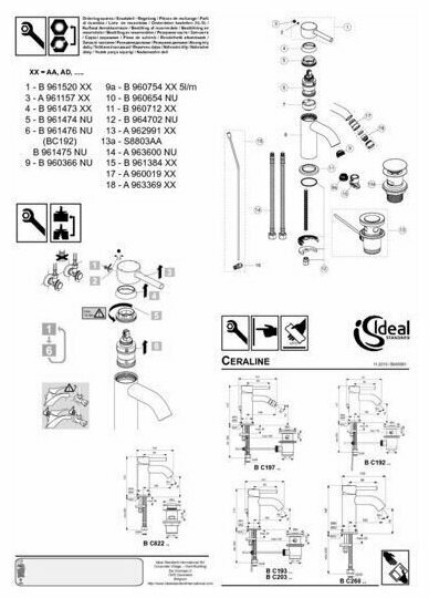 Смеситель Ideal Standard CERALINE для умывальника, картридж 35 мм с функцией HWTC BC203U4: сравнение цен, характеристики, фото, актуальное наличие и цены.
