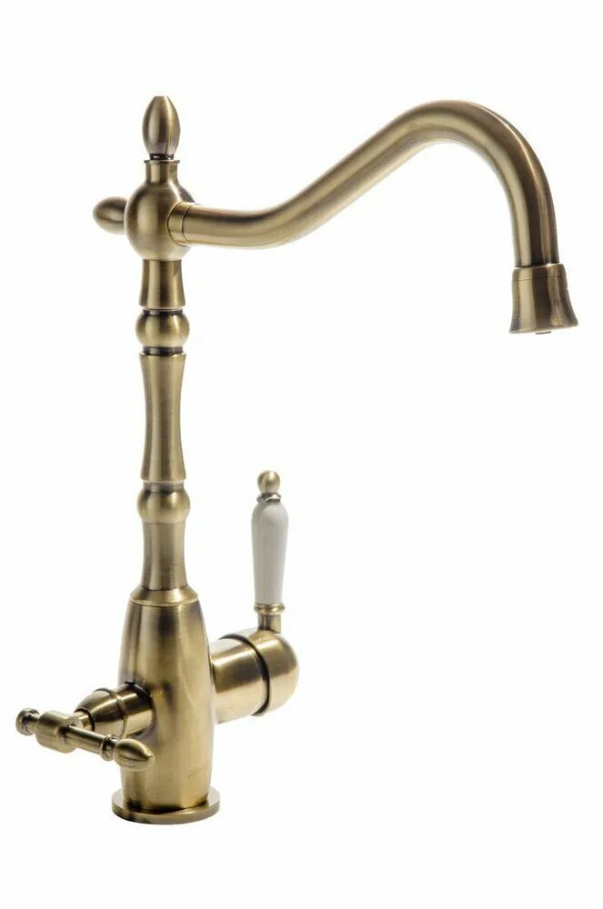 Купить Смеситель кран для кухни ретро с высоким изливом и с подключением к фильтру питьевой воды Бронза с доставкой по всей России. Смеситель кран для кухни ретро с высоким изливом и с подключением к фильтру питьевой воды Бронза: сравнение цен, характеристики, фото, актуальное наличие и цены.