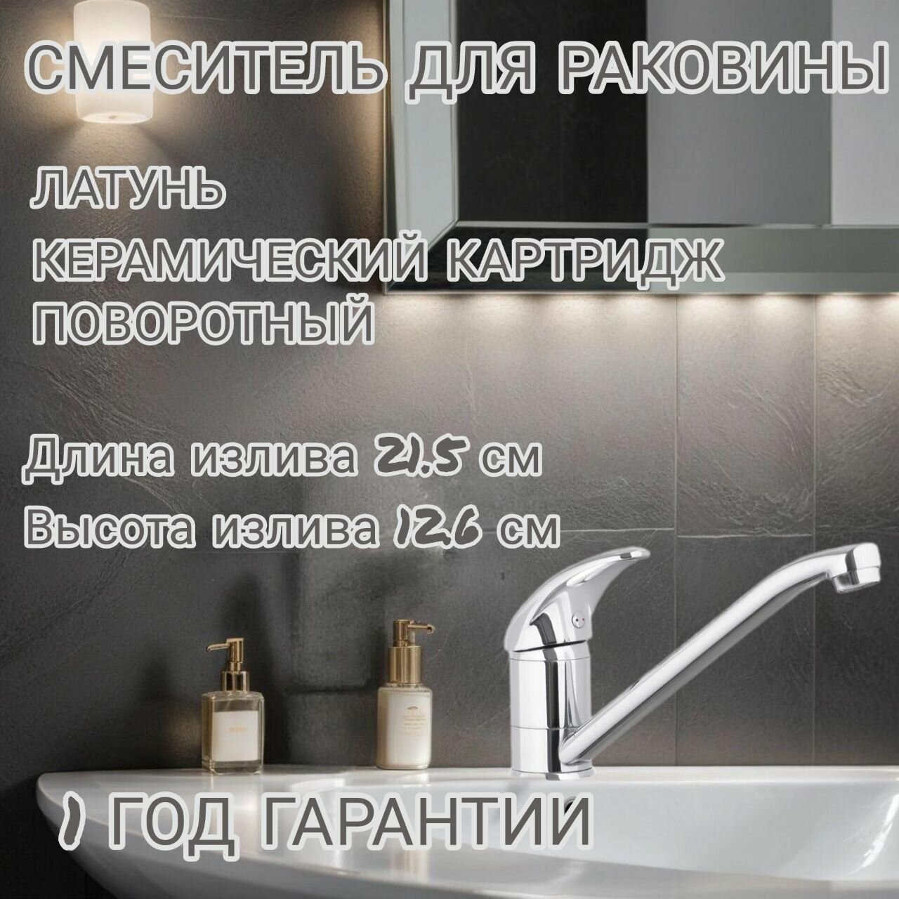 Смеситель/кран для кухни/умывальника (однорычажный с поворотным длинным (21,5 см) изливом, хромированный, латунный) SMART SM354-04C: сравнение цен, характеристики, фото, актуальное наличие и цены.
