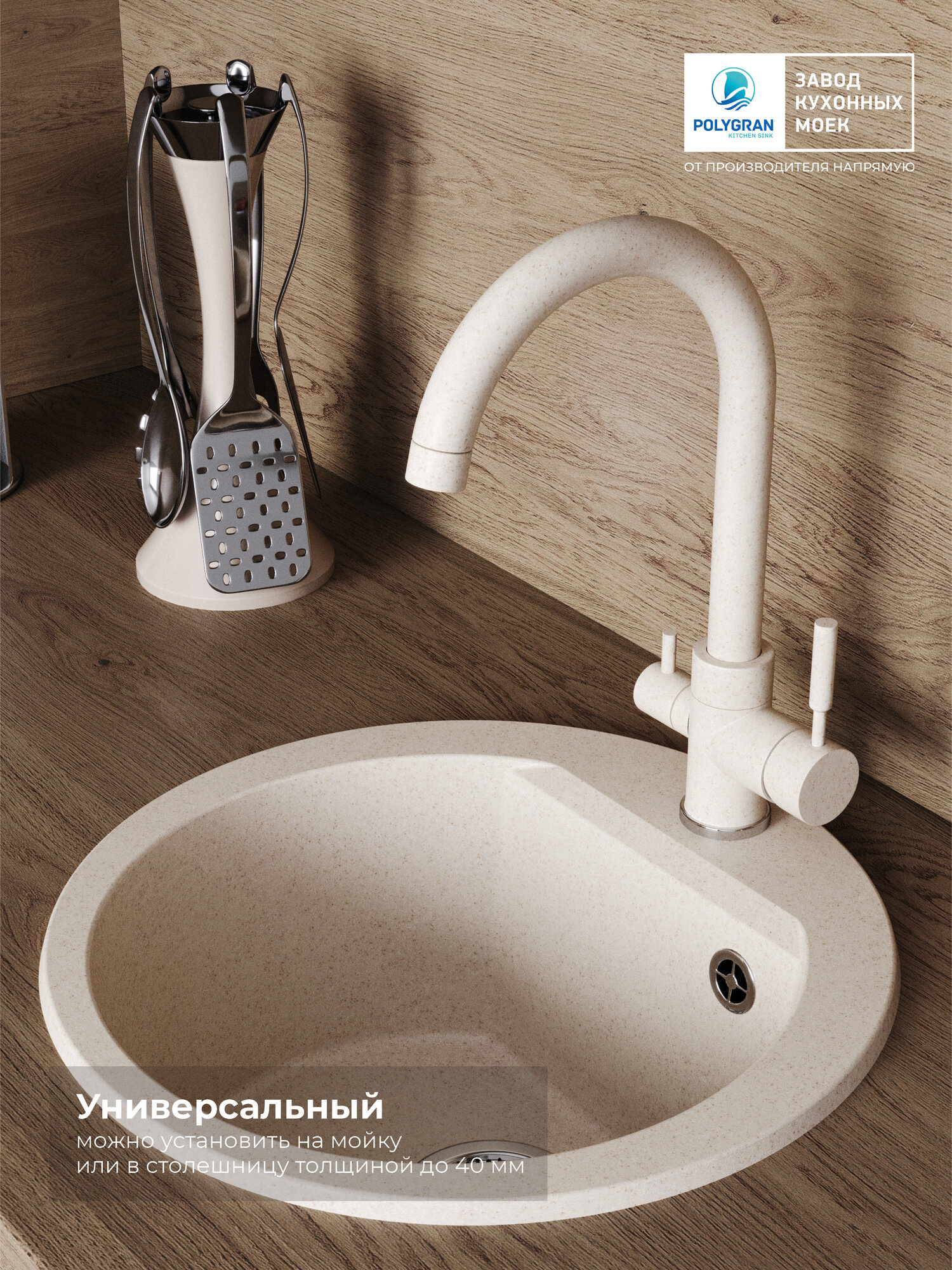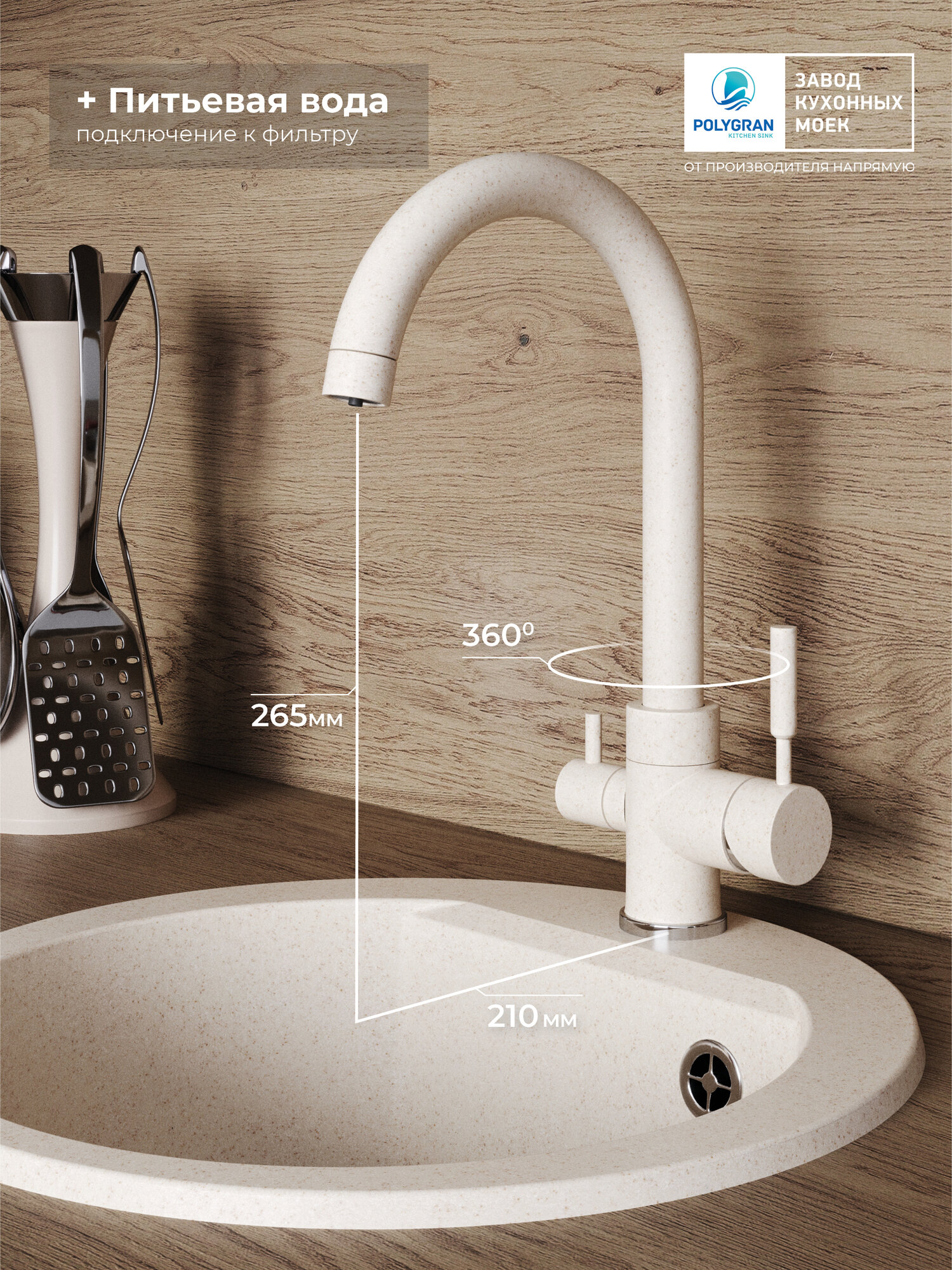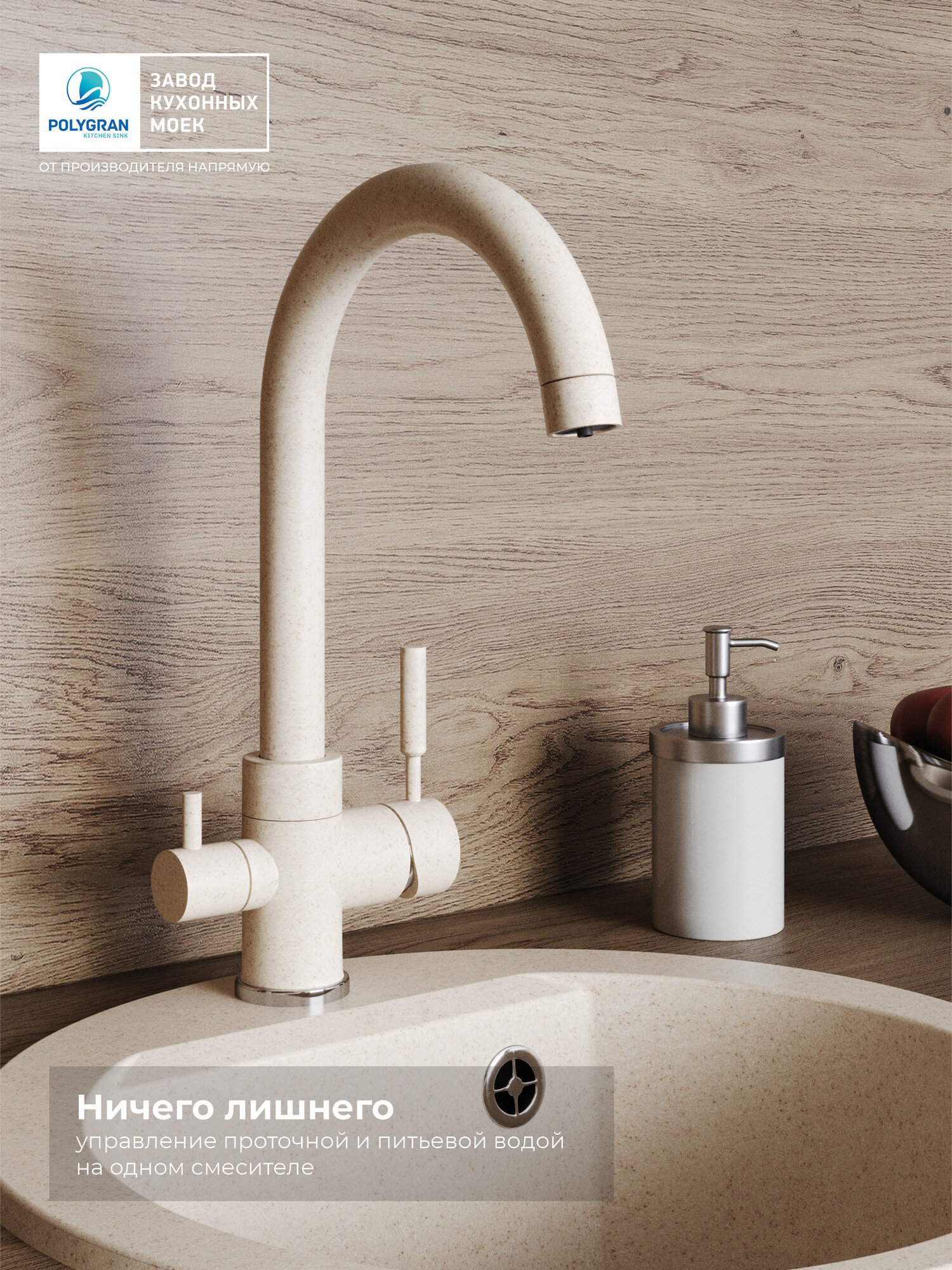 Купить Смеситель для кухни / мойки Polygran Элара Дуо Бежевый (Кремовый) / С фильтром / Латунный / Кран для кухни с доставкой по всей России.