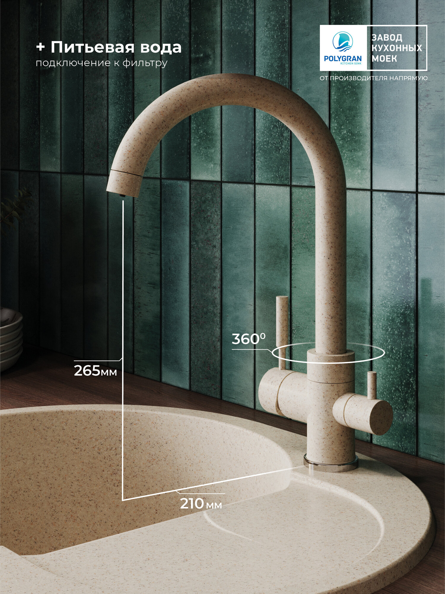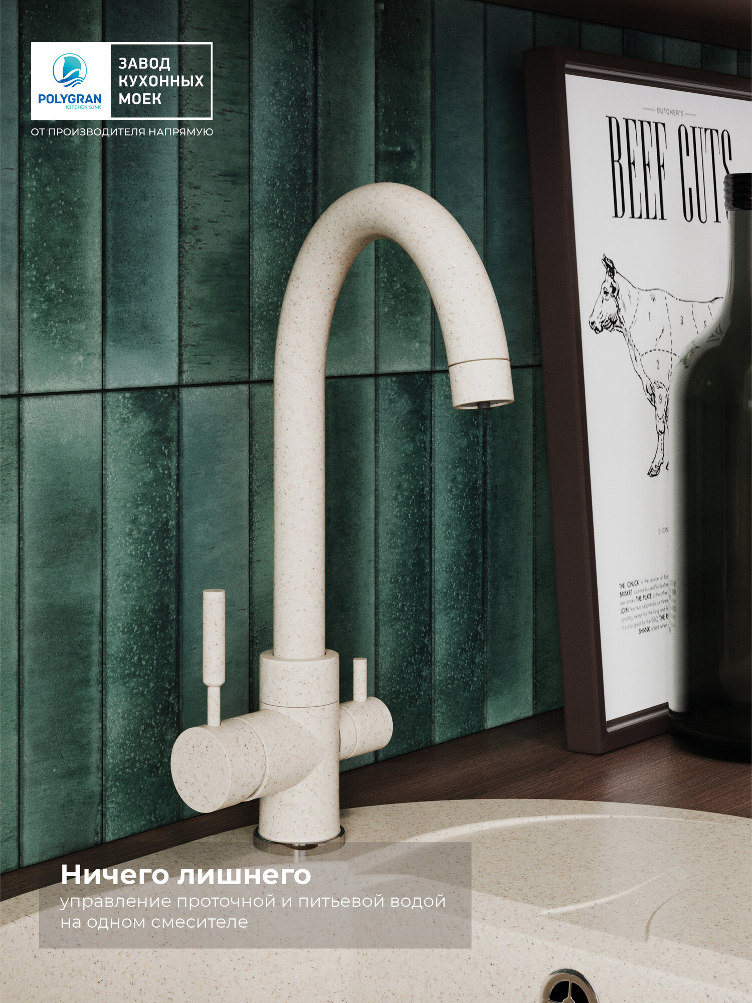 Купить Смеситель для кухни / мойки Polygran Элара Дуо Бежевый (Опал) / С фильтром / Латунный / Кран для кухни с доставкой по всей России.