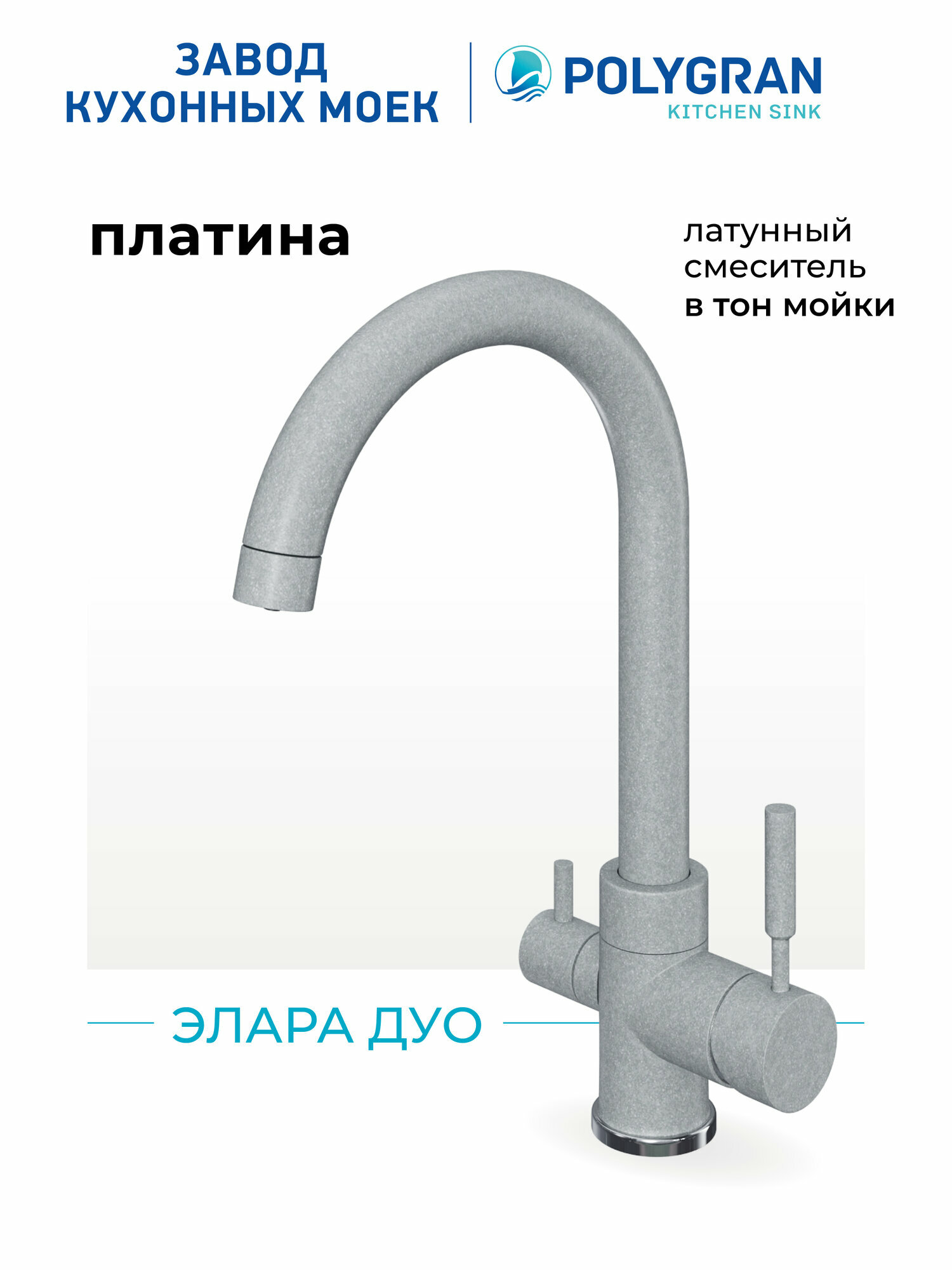 Смеситель для кухни / мойки Polygran Элара Дуо Серый (Платина) / С фильтром / Латунный / Кран для кухни: сравнение цен, характеристики, фото, актуальное наличие и цены.