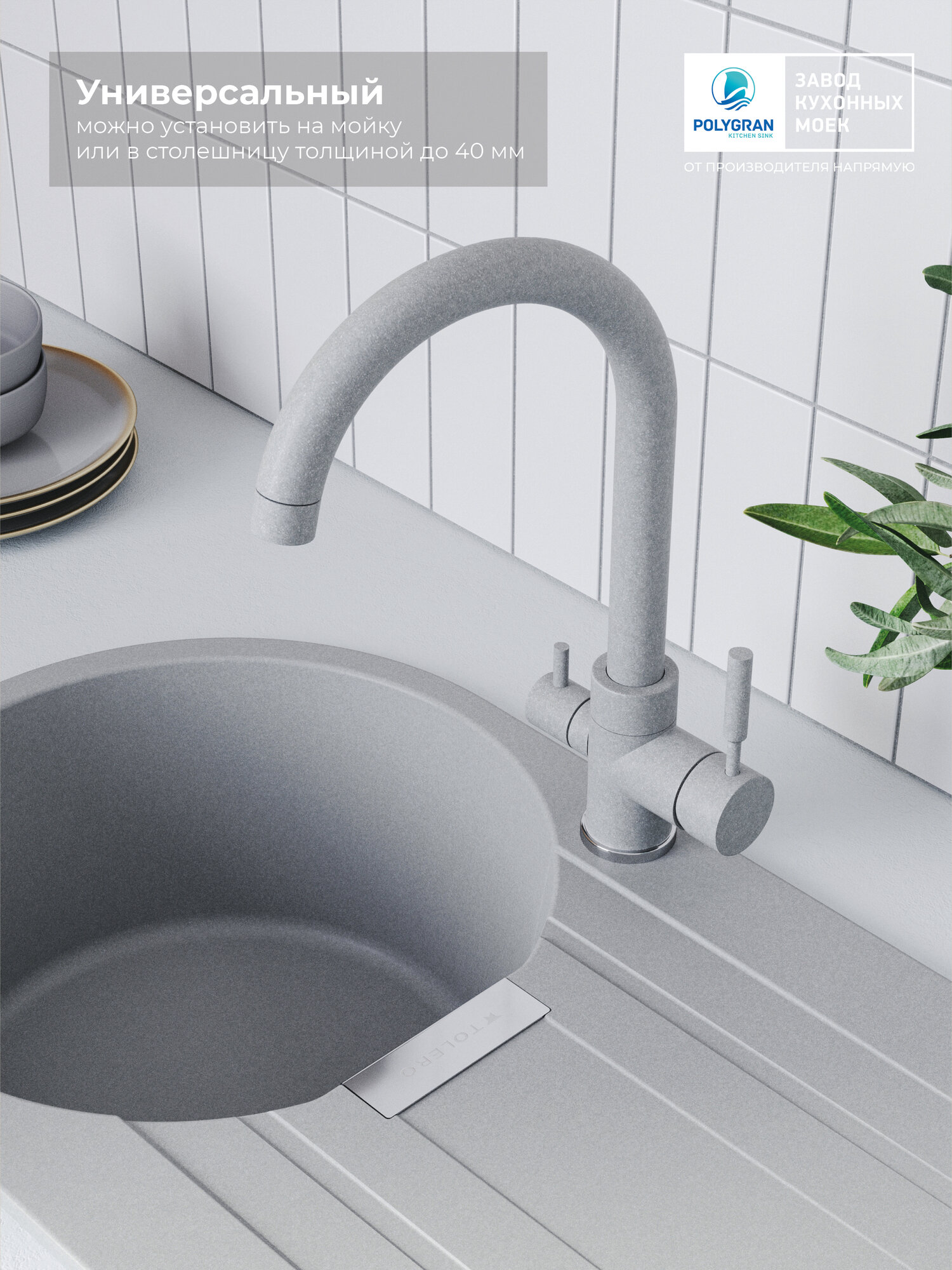 Купить Смеситель для кухни / мойки Polygran Элара Дуо Серый (Платина) / С фильтром / Латунный / Кран для кухни с доставкой по всей России.