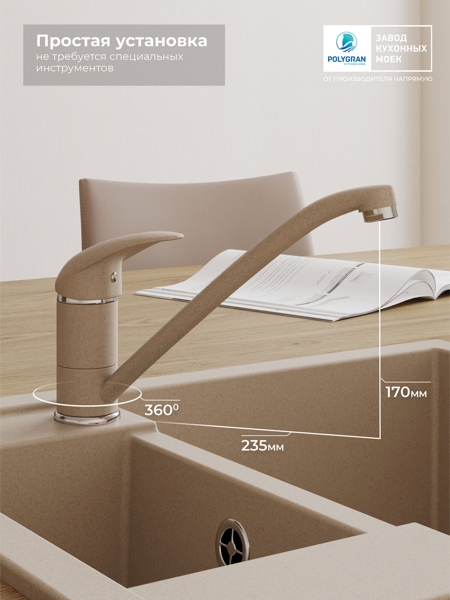 | Особенности | аэратор, поворотный излив |