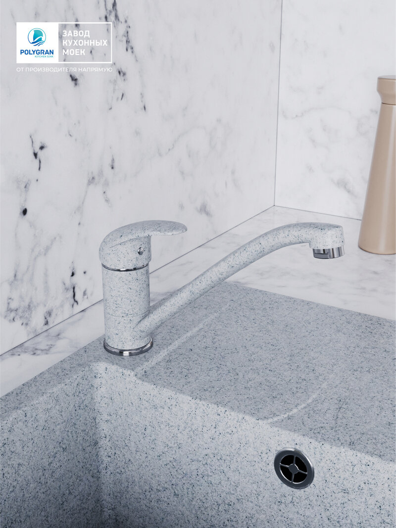 Купить Смеситель для кухни / мойки Polygran Низкий Серый (Светло-серый №314) / Латунный / кран для кухни с доставкой по всей России.