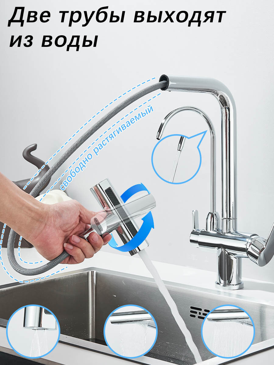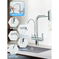 Купить Смеситель кухонный , с изливом, гибкий, латунь, хромированный с доставкой по всей России.