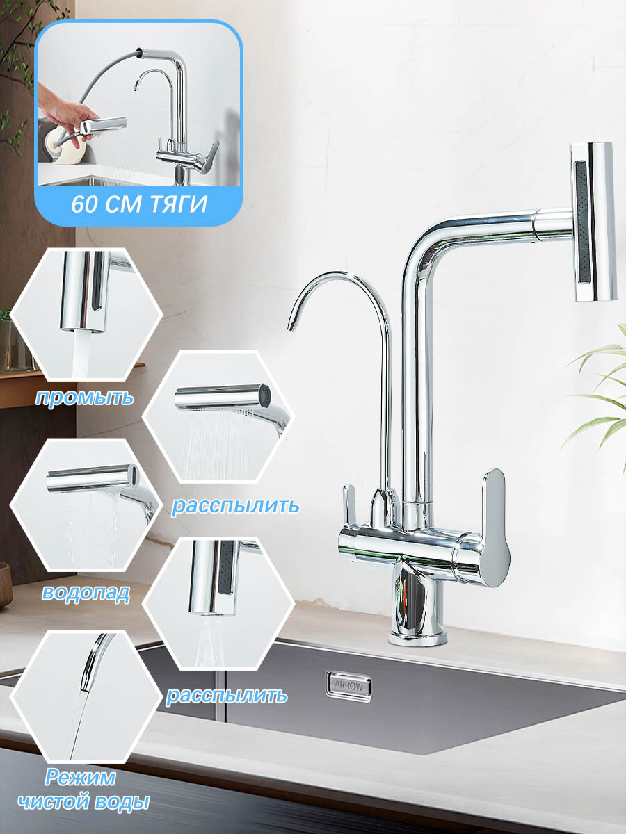 Смеситель кухонный , с изливом, гибкий, латунь, хромированный: сравнение цен, характеристики, фото, актуальное наличие и цены.