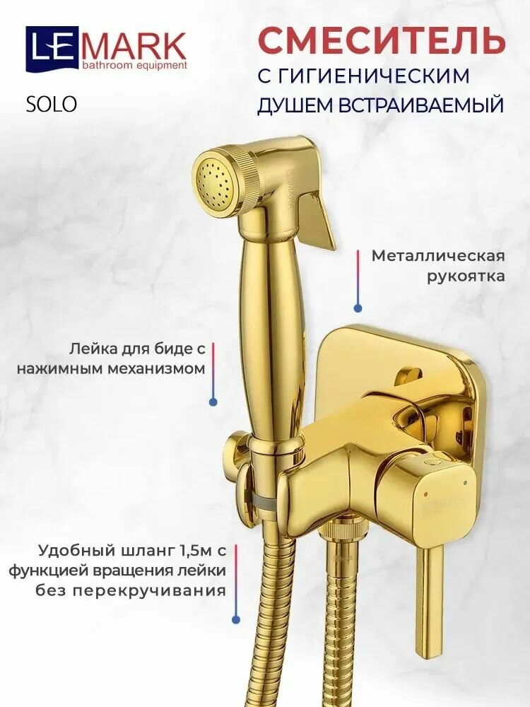 Купить Смеситель латунный с гигиеническим душем встраиваемый Lemark Solo LM7165G золотистый с доставкой по всей России.