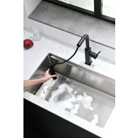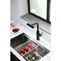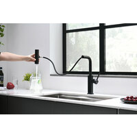 Представляем вашему вниманию стильный и функциональный смеситель для кухни с выдвижной лейкой. Этот черный смеситель станет не только практичным дополнением вашей кухни, но и элегантным акцентом в интерьере. Его продуманный дизайн и современная форма идеально впишутся в любой кухонный ансамбль.