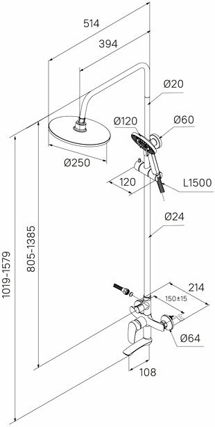 Смеситель для ванны Rora отличается универсальным характером: основной акцент в его дизайне приходится на плавные линии корпуса и классическое цветовое решение. Большой диаметр (250 мм) верхней лейки способствует равномерному распределению струи. Увеличенный вынос верхнего душа (400 мм) дарит максимальную свободу движений. Поворотный излив эстетично встроен в корпус, вода из него поступает в ванну под комфортным углом. • 3-режимная ручная лейка (120 мм) с держателем, душевой шланг (1,5 м), штанга для душа с возможностью регулировки по высоте и крепеж идут в комплекте. • Качественный механизм смешивания воды смесителя Milardo® рассчитан на более чем 70 000 циклов работы – это не менее 15 лет эксплуатации семьей из трех человек. • Оптимальная толщина никель-хромового покрытия защищает смеситель от образования трещин и сколов, продлевает срок его службы. • Гарантия на смесители Milardo® – 7 лет, на картридж – 3 года, на душевые аксессуары – 1 год.