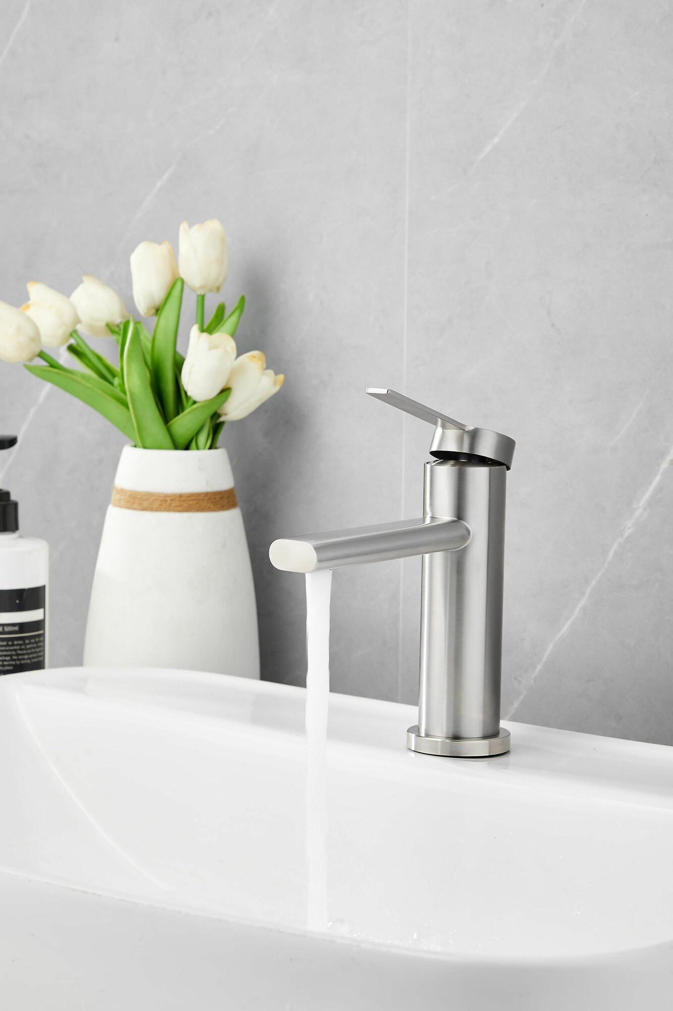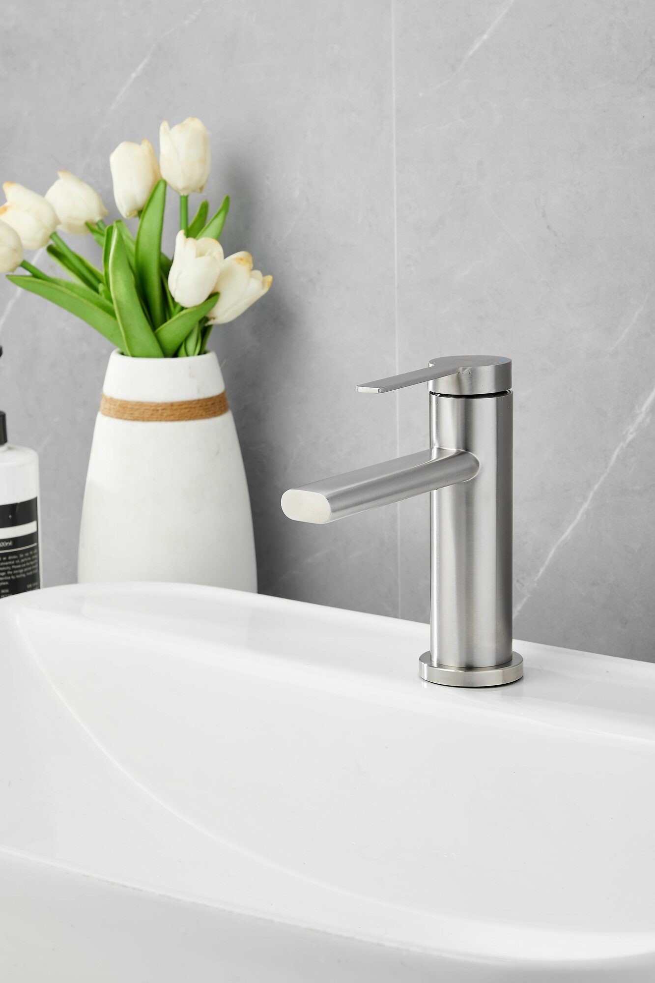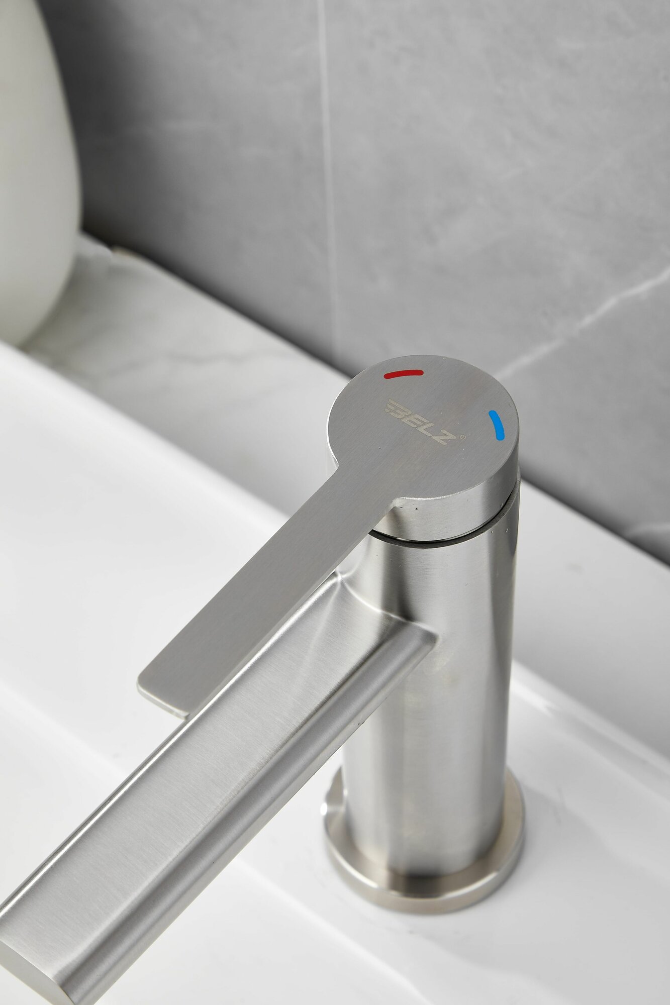 Купить Смеситель монолитный для раковины сатин нержавеющая сталь, кран для умывальника B10813-1 BELZ с доставкой по всей России.