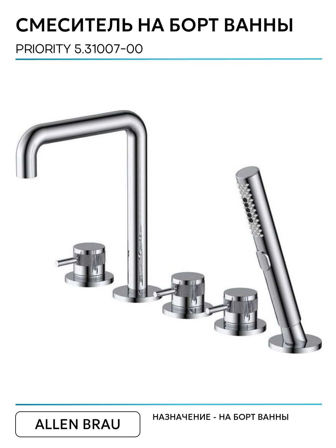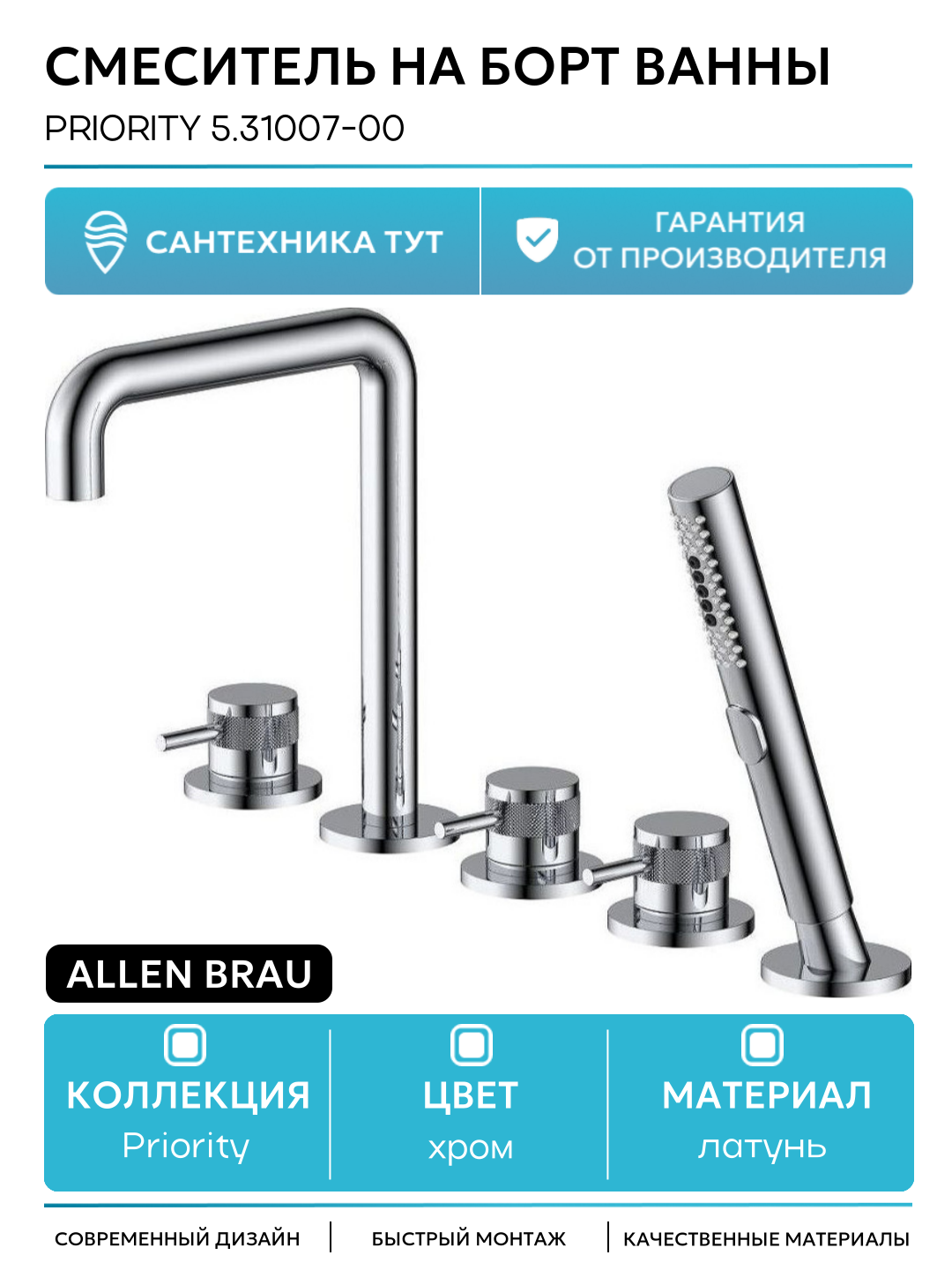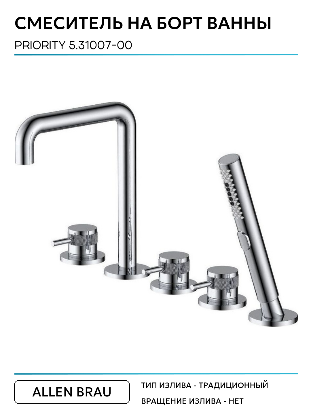 Смеситель на борт ванны Allen Brau Priority 5.31007-00 Хром латунь Германия: сравнение цен, характеристики, фото, актуальное наличие и цены.