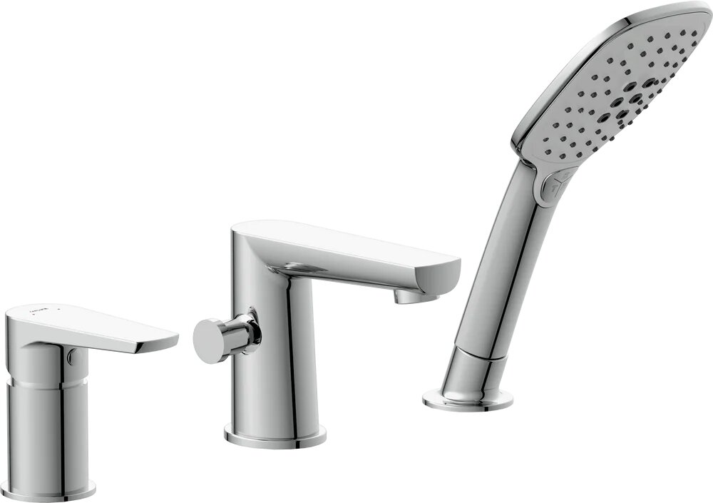 Смеситель на борт ванны Cersanit Moduo 64100 С внутренней частью, встраиваемый, с душевой лейкой, хром, глянцевый, латунный, смеситель для ванны с душем, рычажный