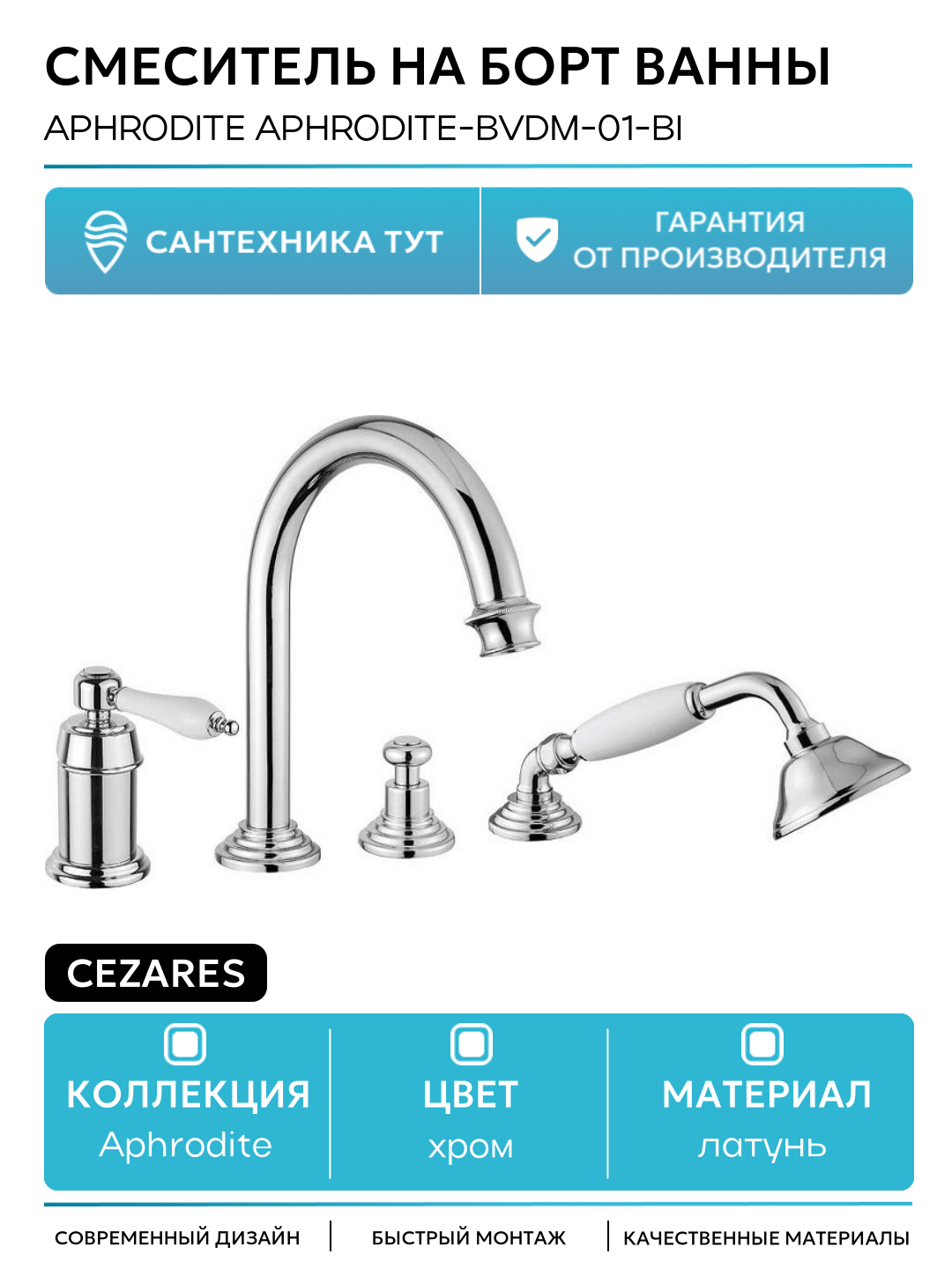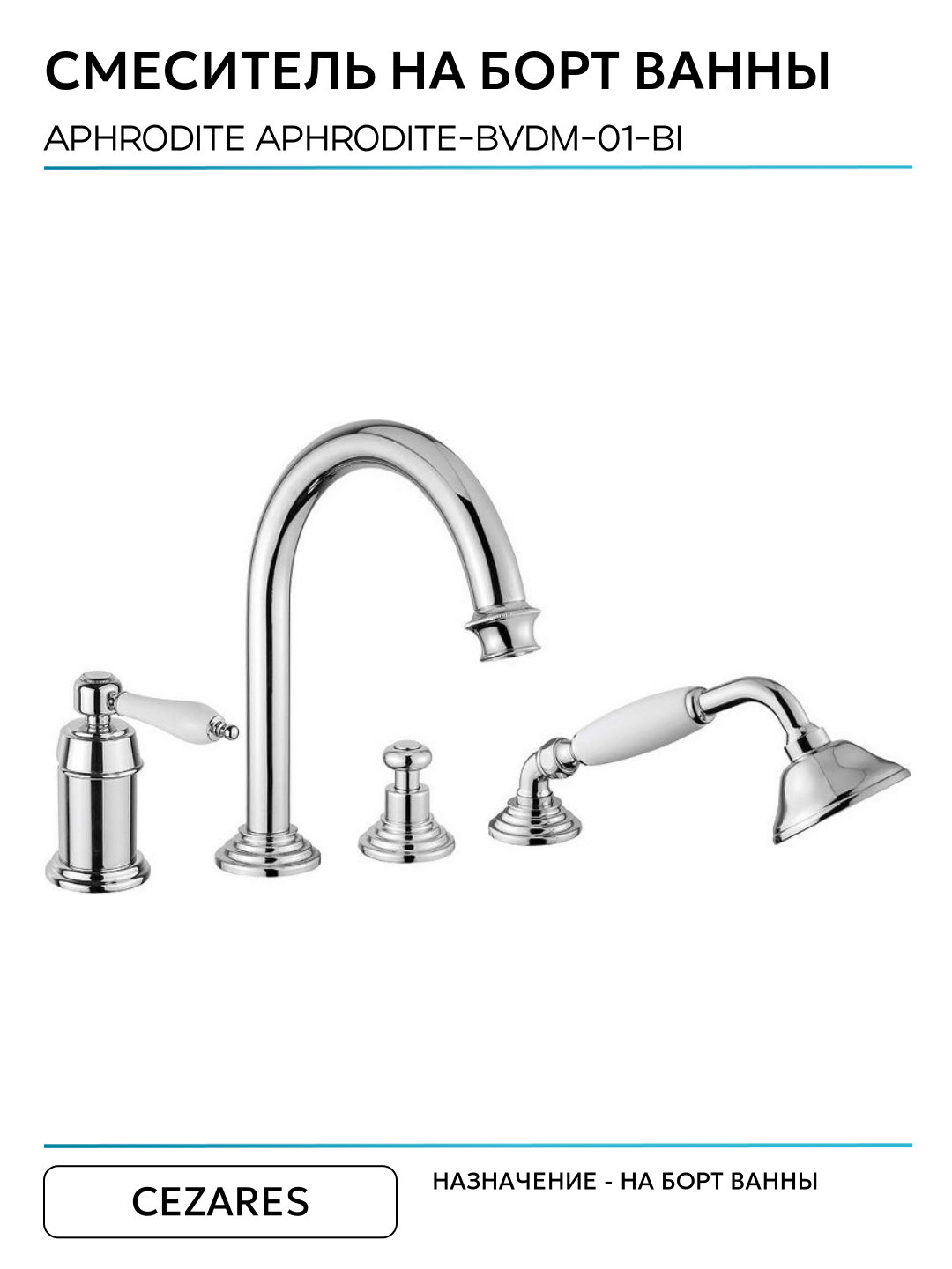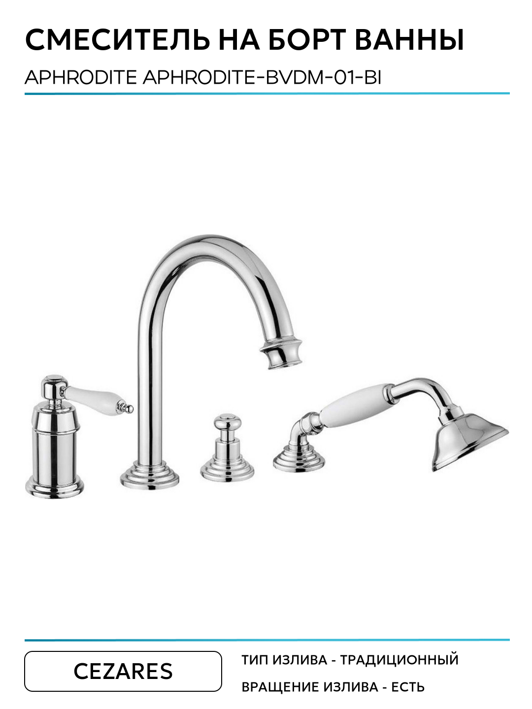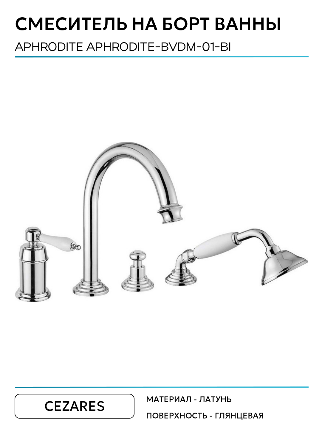 Смеситель на борт ванны Cezares Aphrodite APHRODITE-BVDM-01-Bi Хром латунь Италия: сравнение цен, характеристики, фото, актуальное наличие и цены.