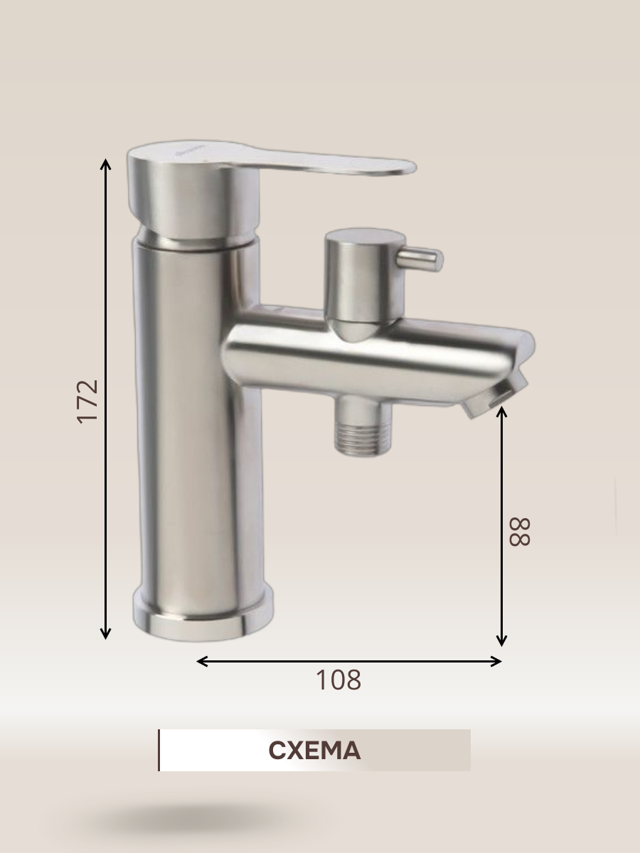 Купить Смеситель на борт ванны / для раковины с лейкой Accoona из нержавеющей стали с доставкой по всей России.