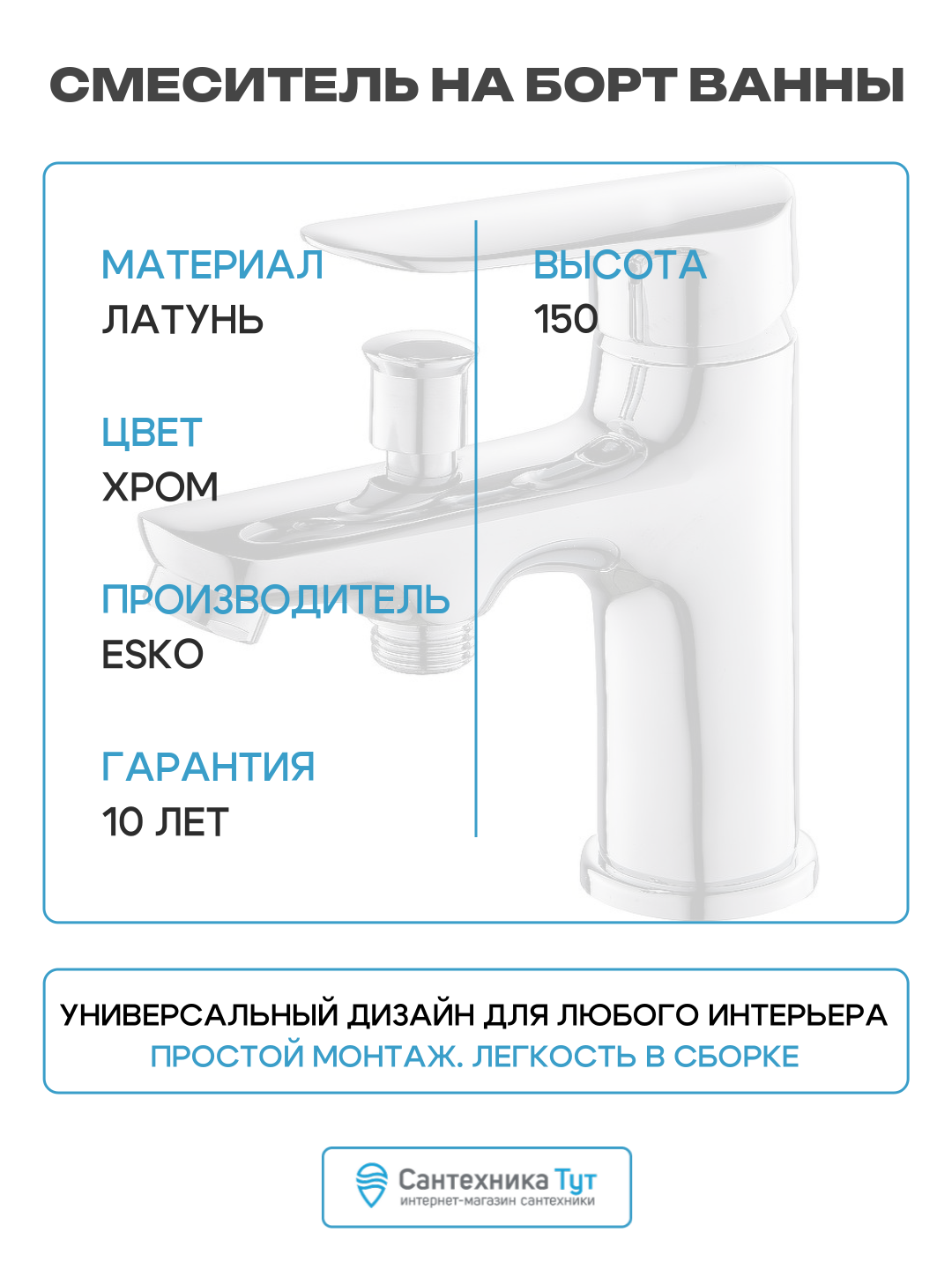Смеситель на борт ванны ESKO Asti AT 53 Хром, качество и надежность