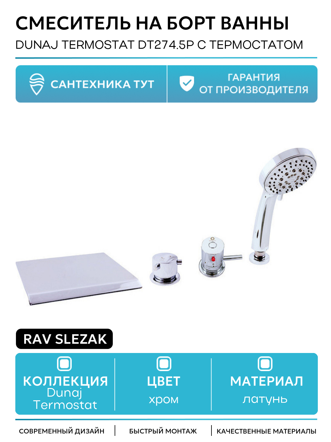 Смеситель на борт ванны Rav Slezak Dunaj Termostat DT274.5P с термостатом Хром латунь Чехия: сравнение цен, характеристики, фото, актуальное наличие и цены.