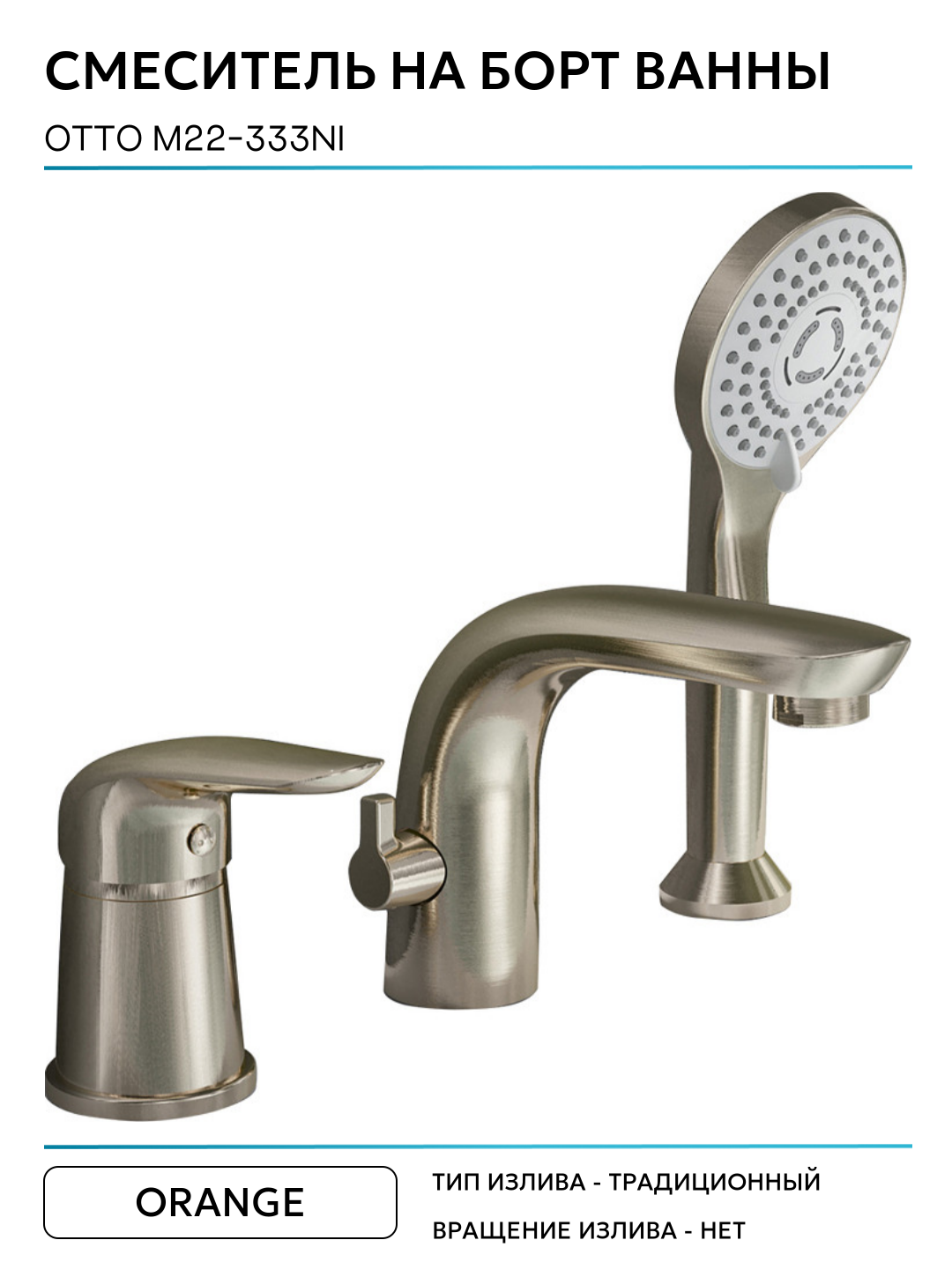 Купить Смеситель Orange M60-333ni на борт ванны с душевым набором, никель с доставкой по всей России. Смеситель Orange M60-333ni на борт ванны с душевым набором, никель: сравнение цен, характеристики, фото, актуальное наличие и цены.