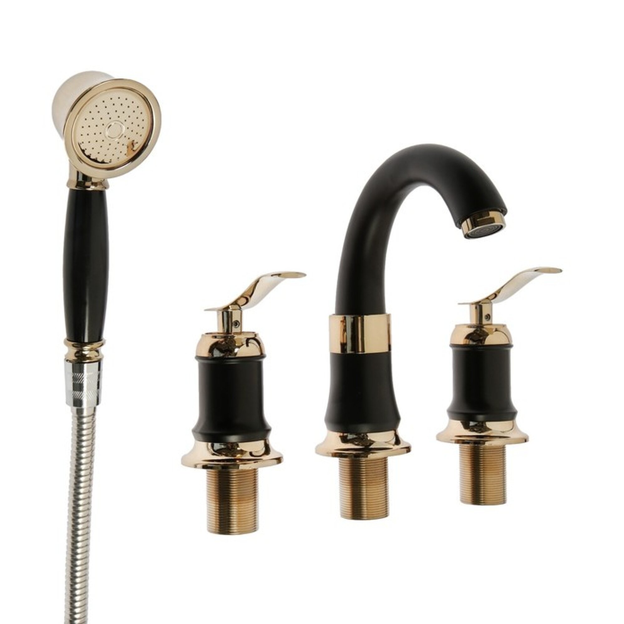 Купить Смеситель на борт ванны ZEIN NB-7, на четыре отверстия, комплект, ретро, черный/золотой с доставкой по всей России.