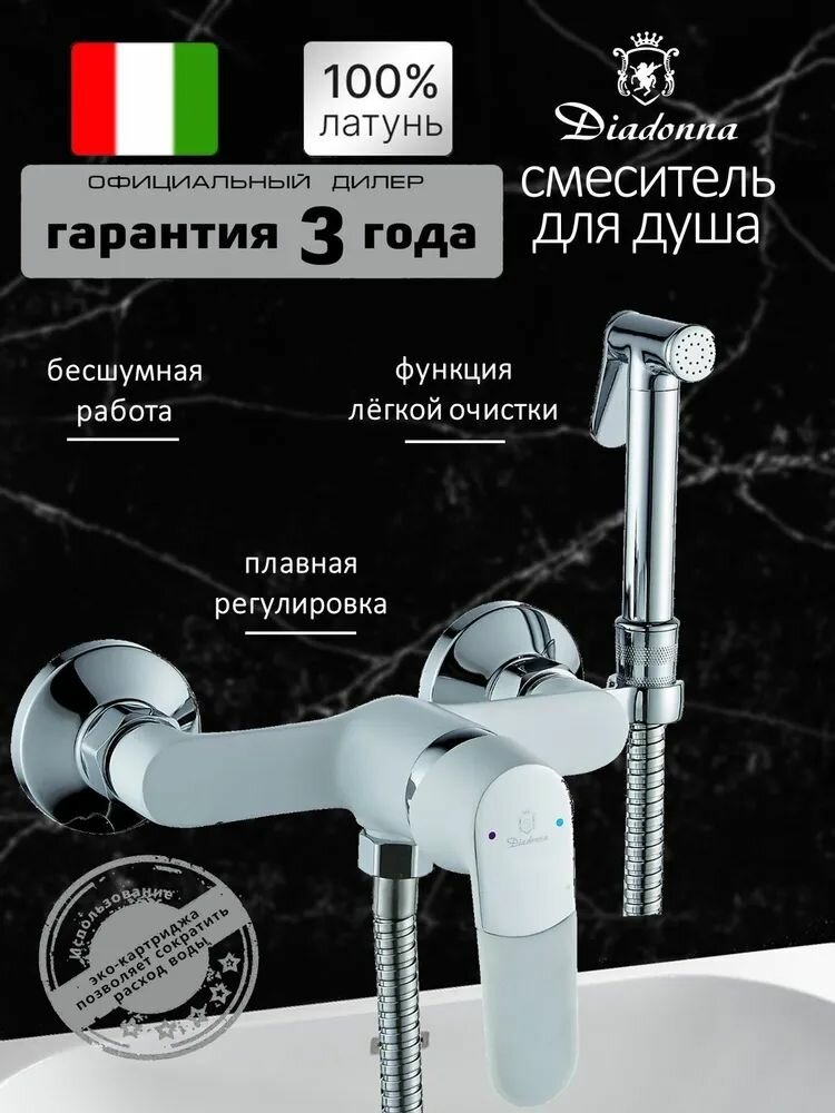 Смеситель на душ Diadonna D87-228114W с гигиенической лейкой, картридж 35 мм, белый: сравнение цен, характеристики, фото, актуальное наличие и цены.