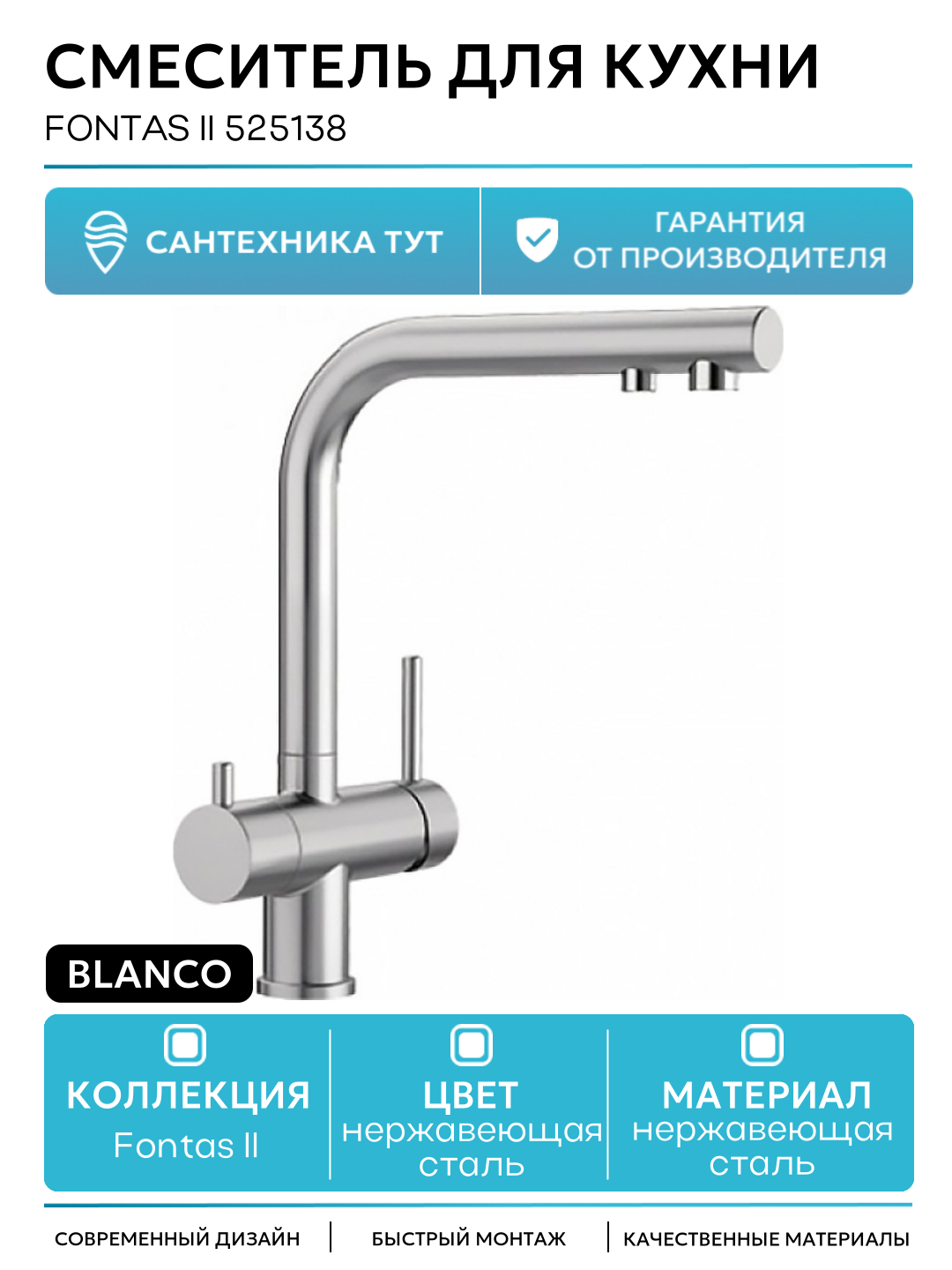 Смеситель на кухню для раковины / Кухонный кран для мойки Blanco Fontas II Нержавеющая сталь: сравнение цен, характеристики, фото, актуальное наличие и цены.