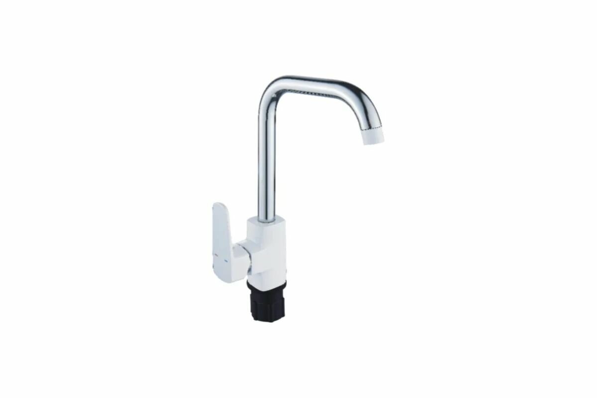 Купить Смеситель на кухню Эверест B40-0277 с высоким изливом, картридж 35 мм, белый, крепление гайка с доставкой по всей России.