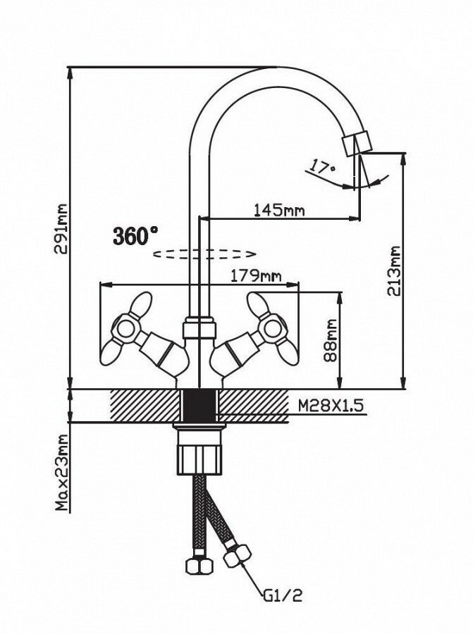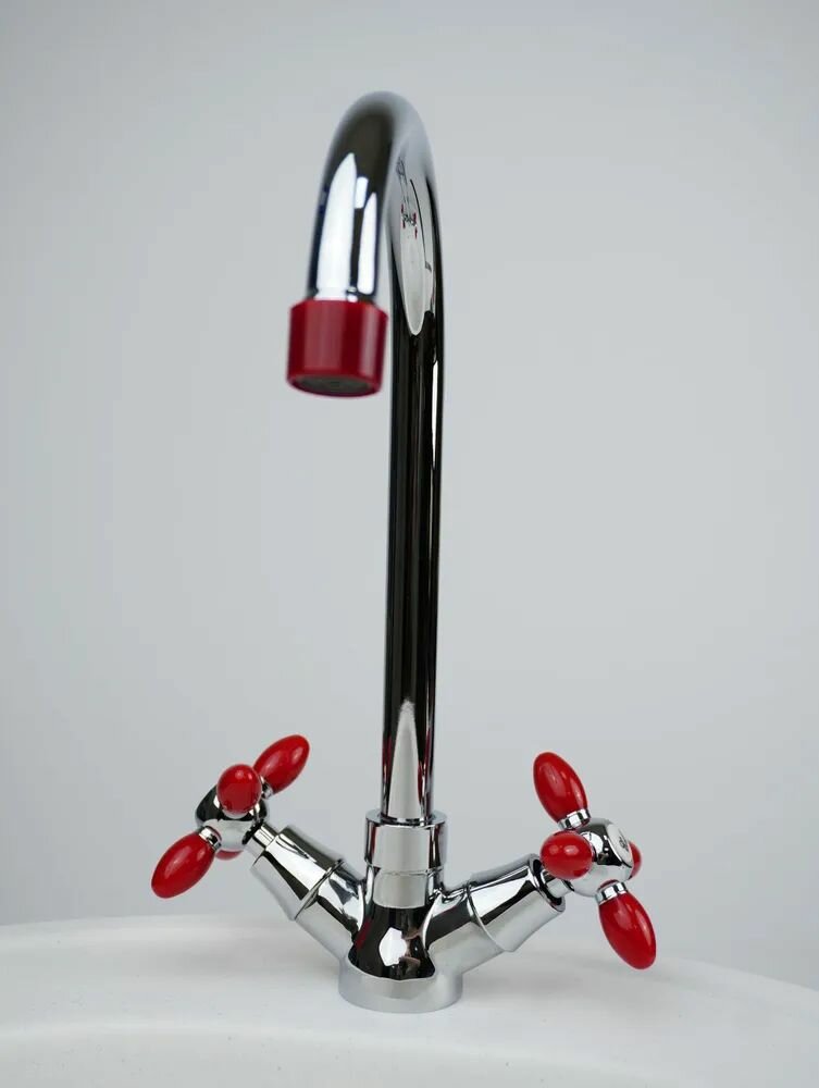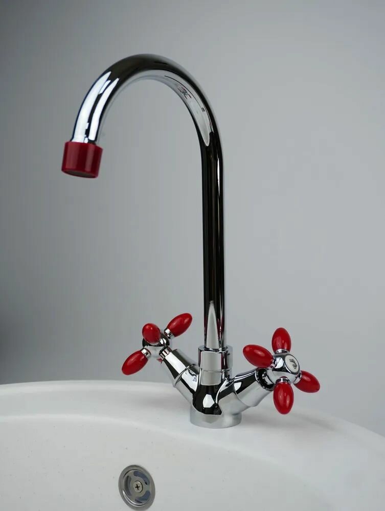 Смеситель на кухню Эверест B59-071C с высоким изливом, латунные кран-буксы, хром, крепление гайка