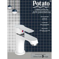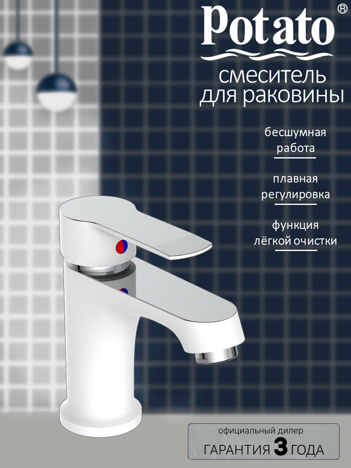 Смеситель на раковину Potato P10237-7 картридж 35 мм, белый, крепление гайка: сравнение цен, характеристики, фото, актуальное наличие и цены.