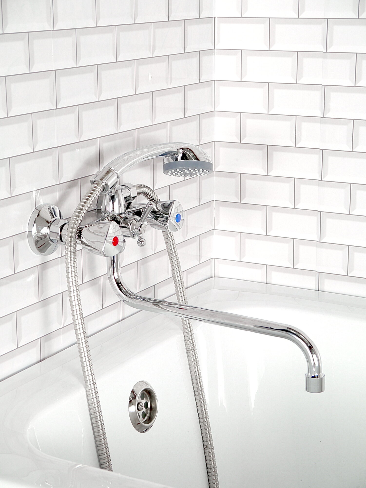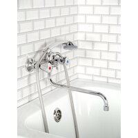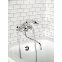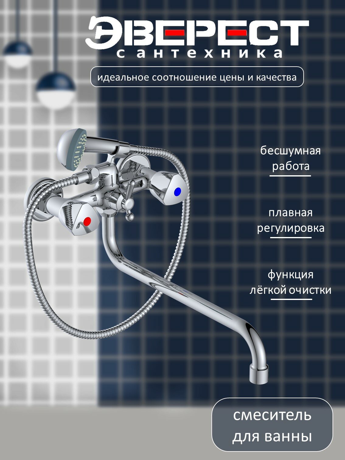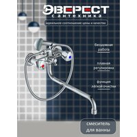 Купить Смеситель на ванну Эверест B22-334 с длинным круглым поворотным изливом, кран-буксы 1/2″, хром с доставкой по всей России.
