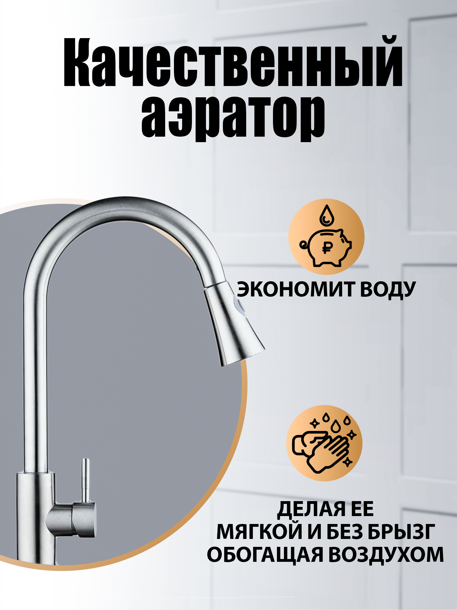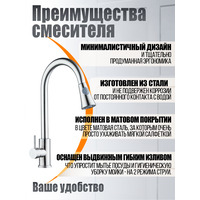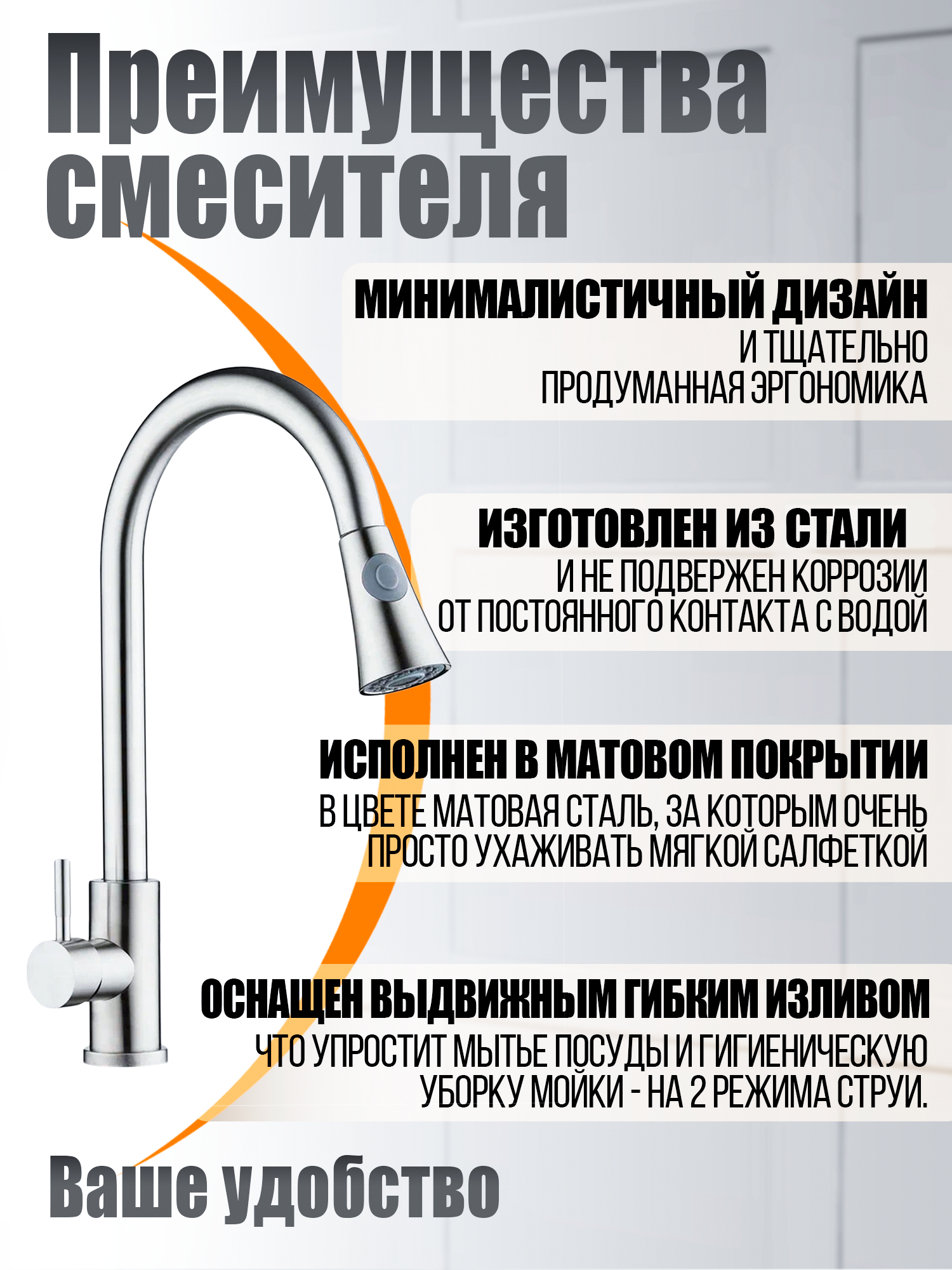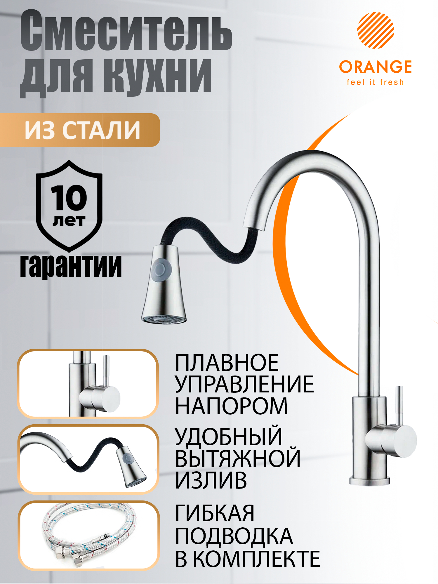 Смеситель для кухни однорычажный с вытяжным изливом 2 режима Orange Steel M99-120st, матовая сталь: сравнение цен, характеристики, фото, актуальное наличие и цены.