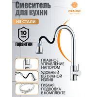 Купить Смеситель для кухни однорычажный с вытяжным изливом 2 режима Orange Steel M99-120st, матовая сталь с доставкой по всей России.