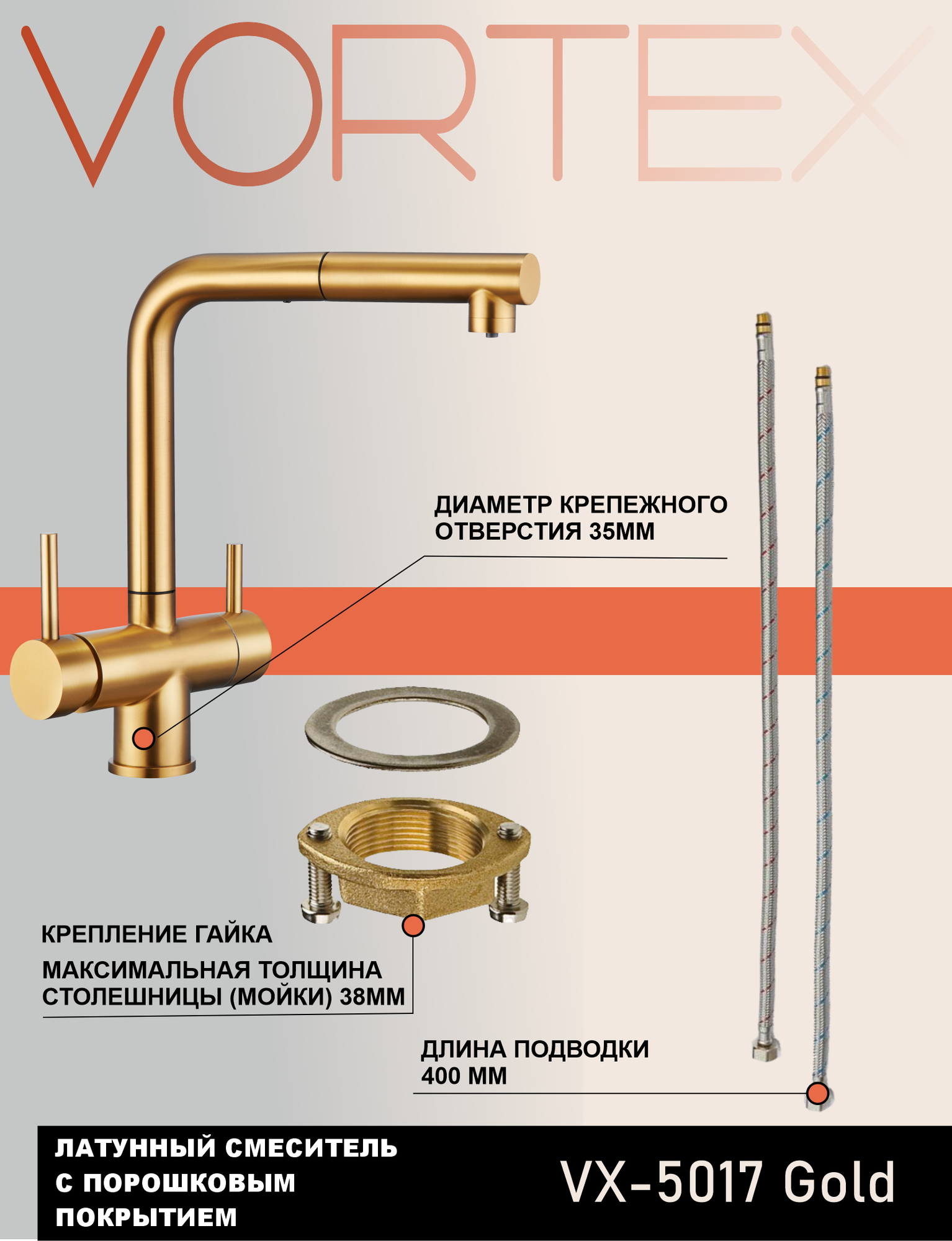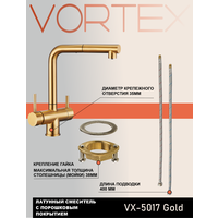 Купить Смеситель под фильтр с вытяжным изливом VX-5017 PVD Golden золото, латунь, совмещенный аэратор, PVD покрытие с доставкой по всей России.