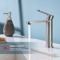 Смеситель Raglo «R10.10.05» для раковины, монолитный, нержавеющая сталь, сатин