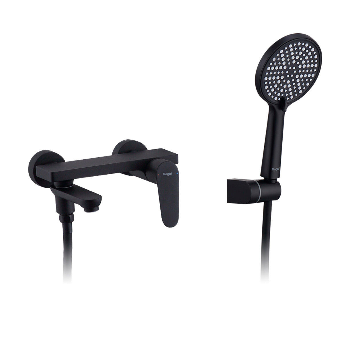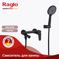 Купить Смеситель Raglo R31.30.06 для ванны и душа, настенный излив, поворотный, 15 см, черный с доставкой по всей России.