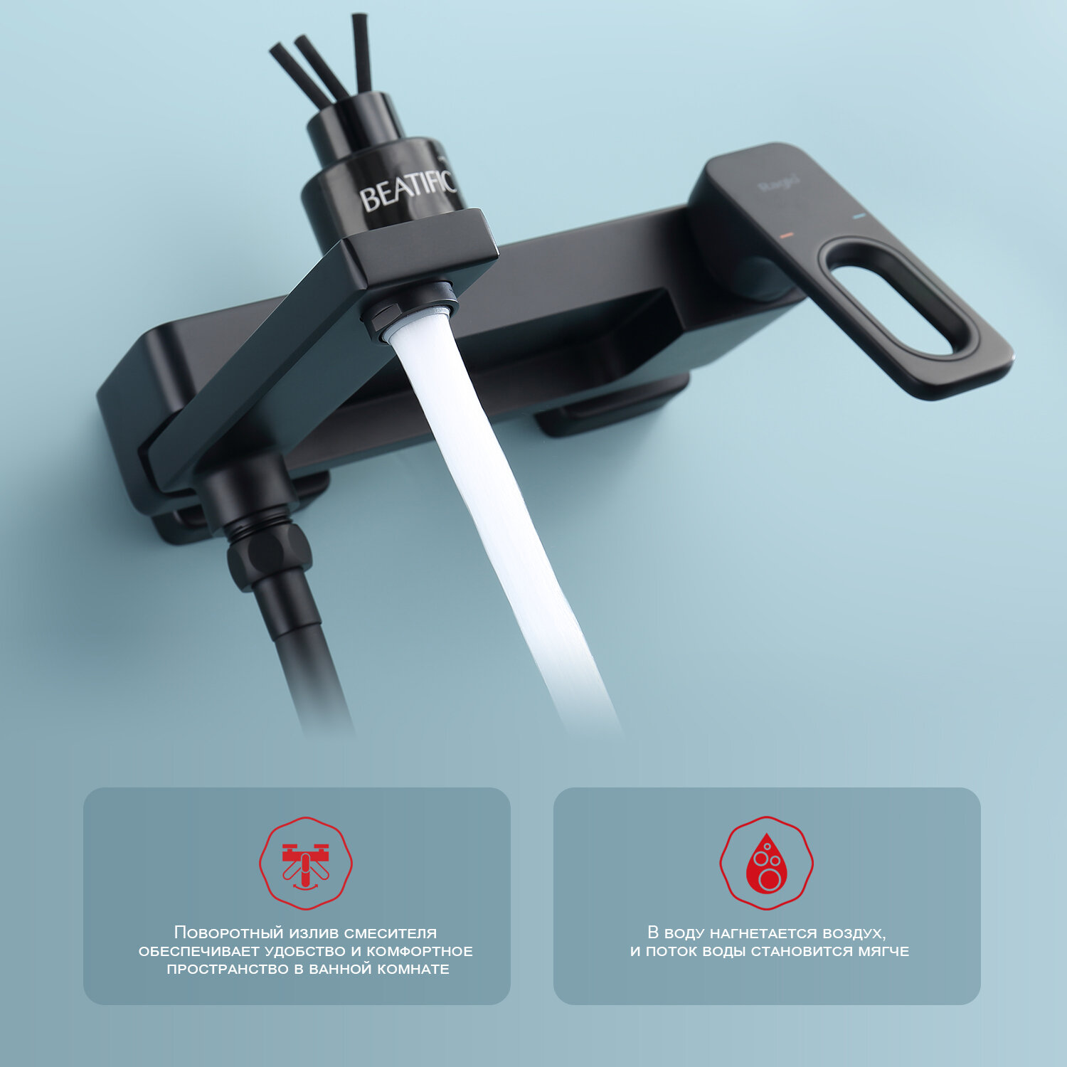 Смеситель Raglo R51.30.06 для ванны и душа, настенный, излив поворотный, 15 см, черный: сравнение цен, характеристики, фото, актуальное наличие и цены.