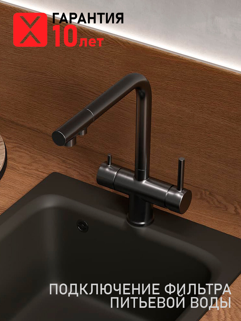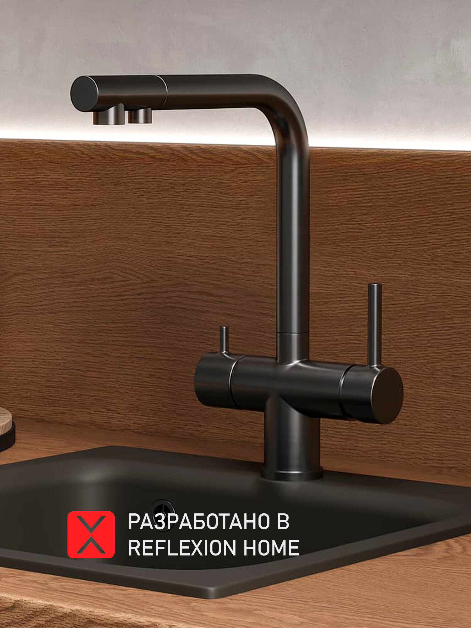 Смеситель Reflexion Lago RX9903BL для кухни с подключением к фильтру, оружейная сталь