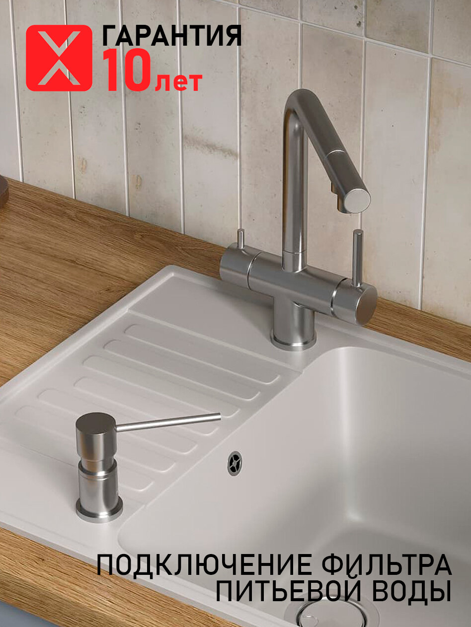 Смеситель Reflexion Lago RX9903SS для кухни с подключением к фильтру, полированная сталь: сравнение цен, характеристики, фото, актуальное наличие и цены.